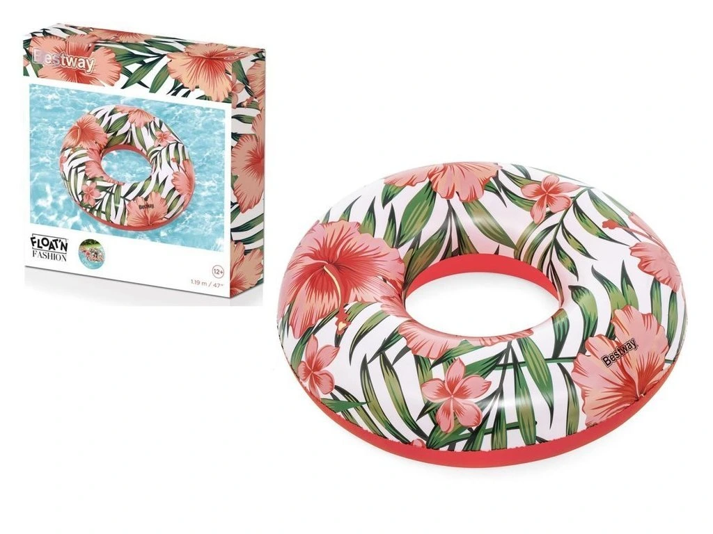 Nafukovací kruh do vody s květinami 119cm Bestway růžový