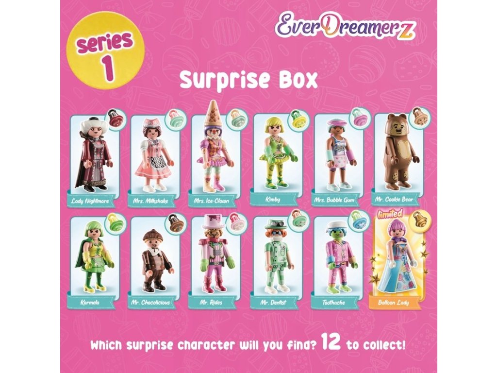 - 12 dalších figurek ke sběru, včetně figurky Balloon Lady z limitované edice a zlatého přívěsku s muffinem
