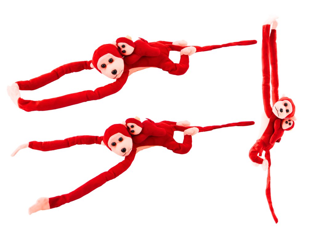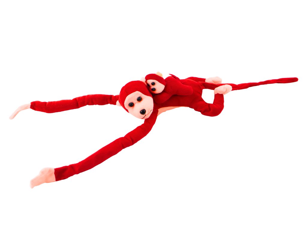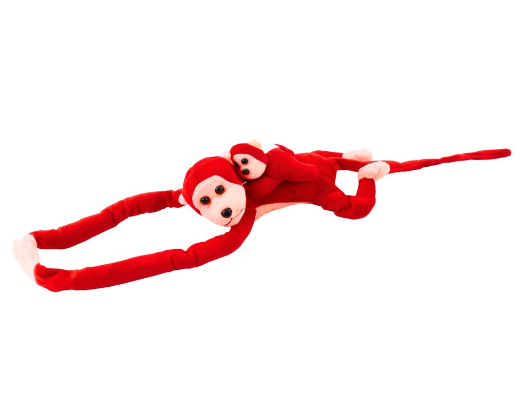 Plyšová opička s mláďátkem 70 cm červená