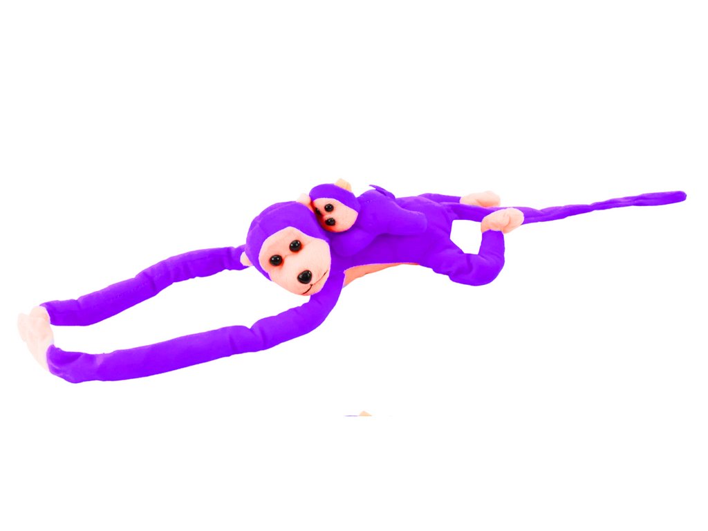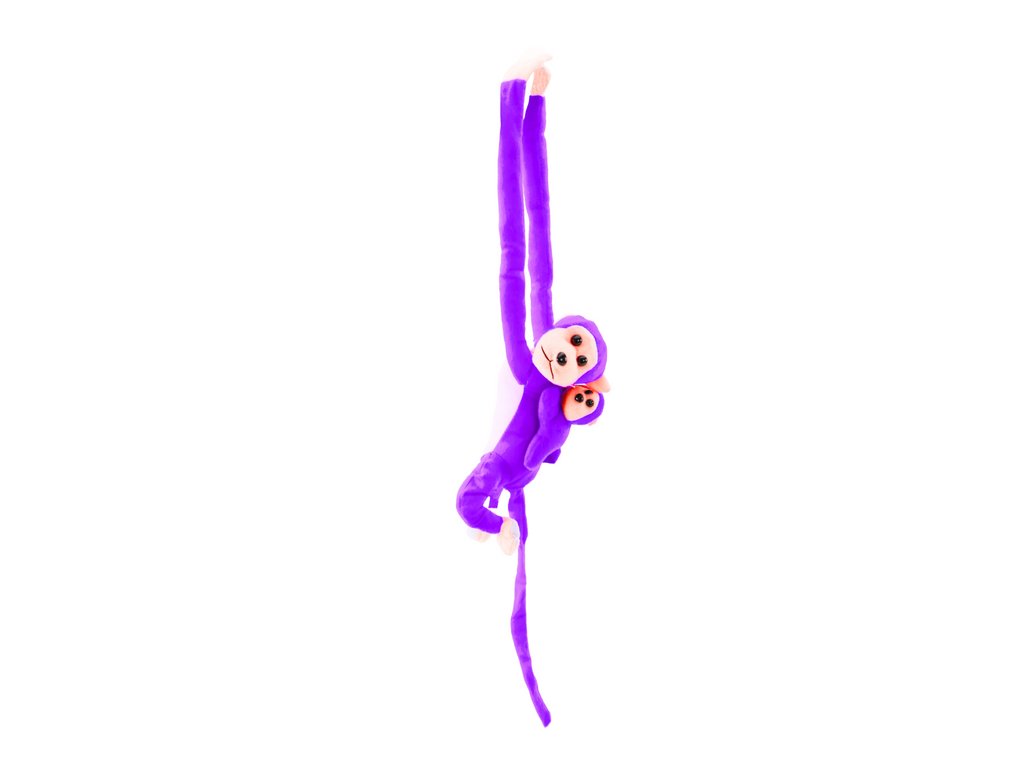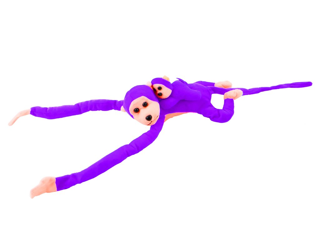Plyšová opička s mláďátkem 70 cm fialová