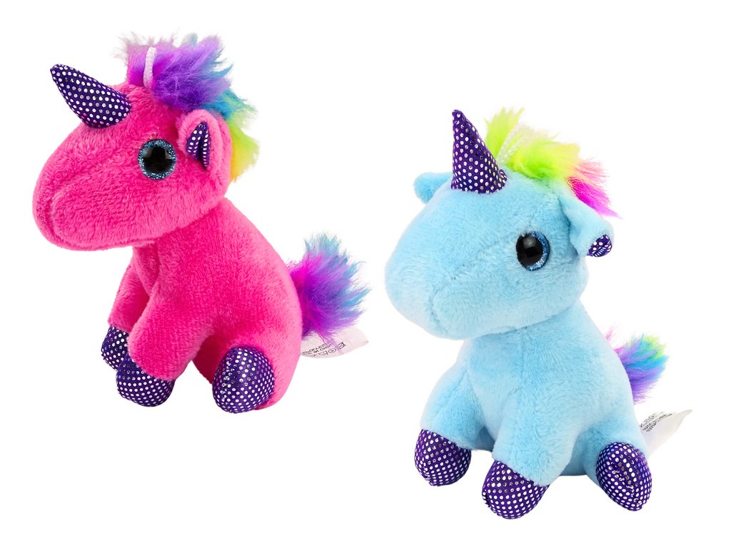 Plyšový jednorožec s barevnou hřívou v gumové tašce 3 druhy