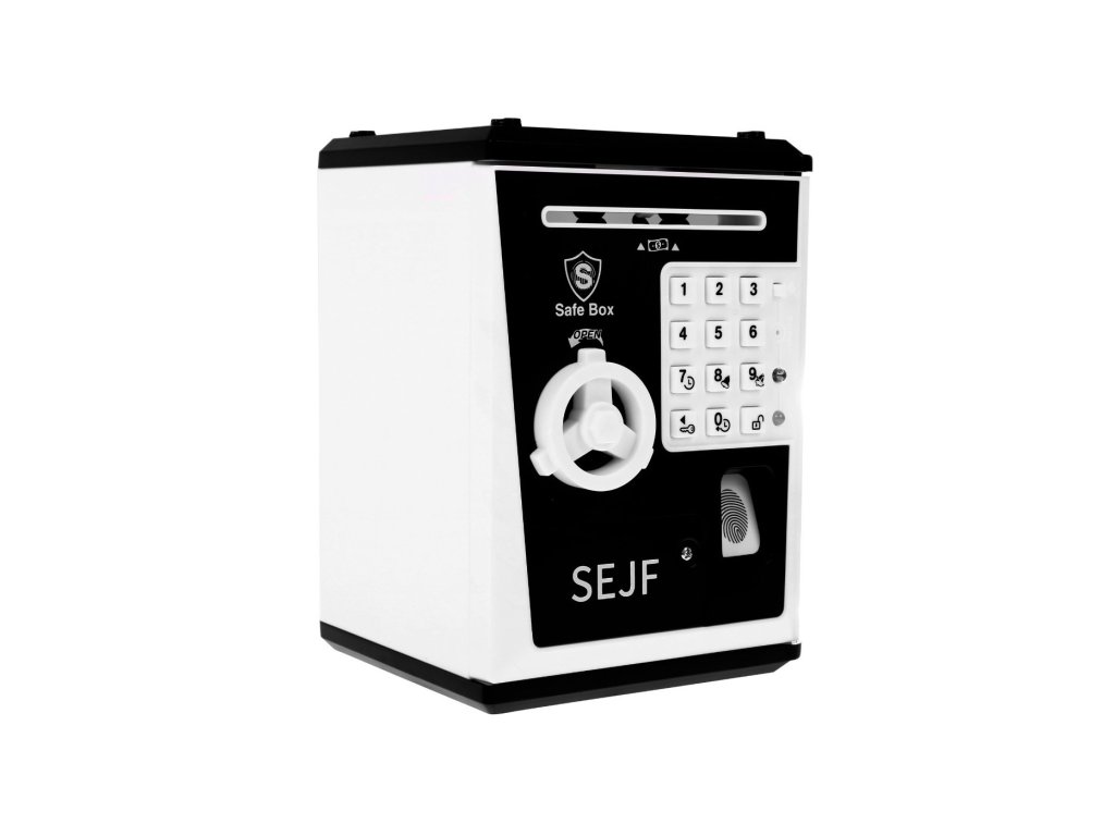 - Pokladnička na peníze ve tvaru trezoru, napájená 3 bateriemi AA 3 x 1,5 V (nejsou součástí balení)