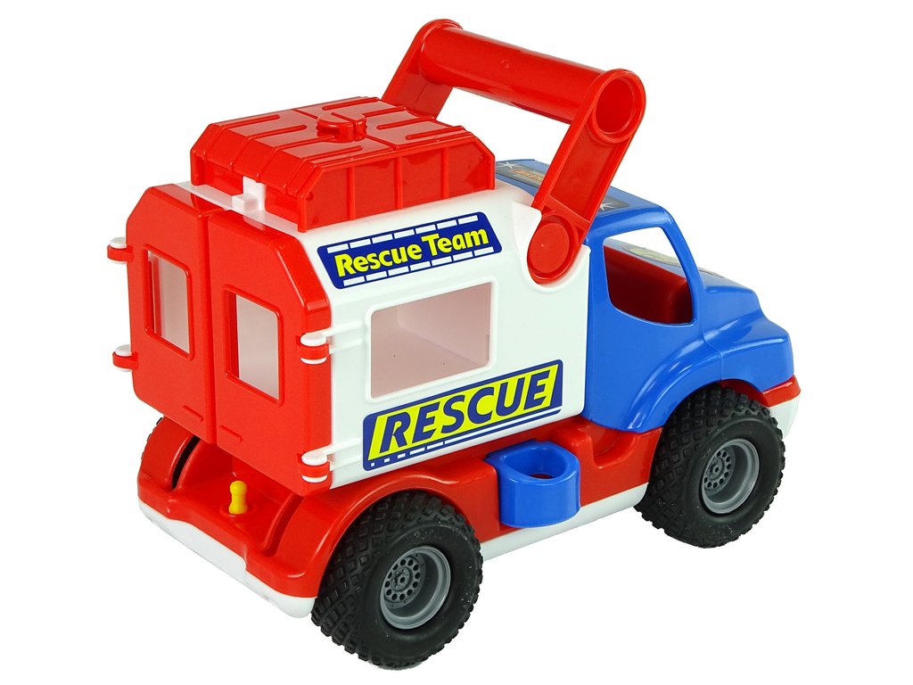 Hra pomáhá dítěti rozvíjet přesnost, úchop a schopnost logicky myslet. Hračka zabaví vaše dítě po dlouhé hodiny. Vozidlo má gumová kola s běhounem, který má lepší přilnavost k povrchu. Hračka má otevírací prvky, červené zadní dveře a horní úložný prostor. Uvnitř můžete skrýt různé poklady nebo figurky. Na boku vozu je zámek, který drží přívěs pevně, po vytažení návěsu k sobě je již mobilní, stačí zatáhnout červenou rukojeť zpět a celý návěs se nakloní zpět. Probuďte zvědavost svého dítěte.