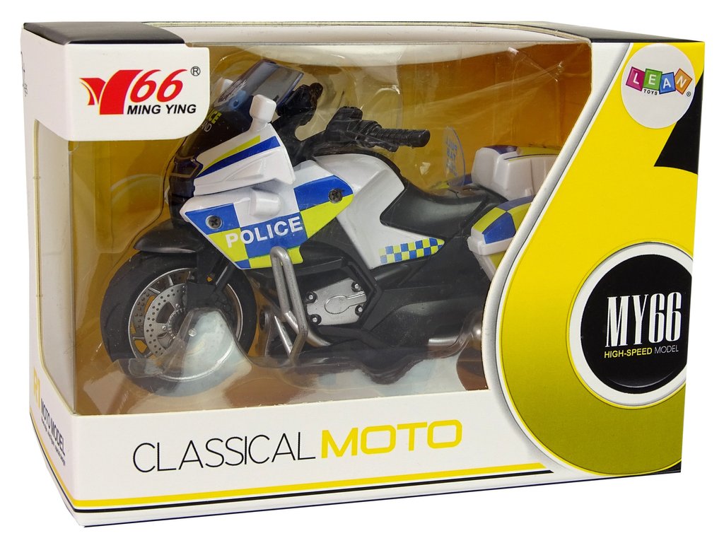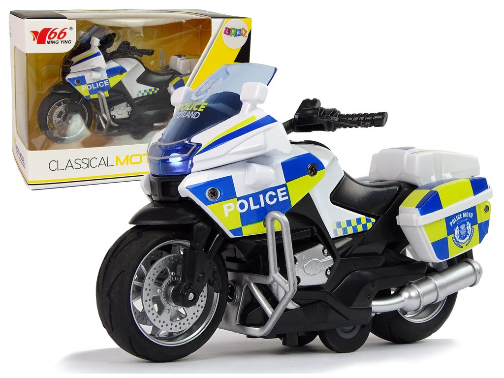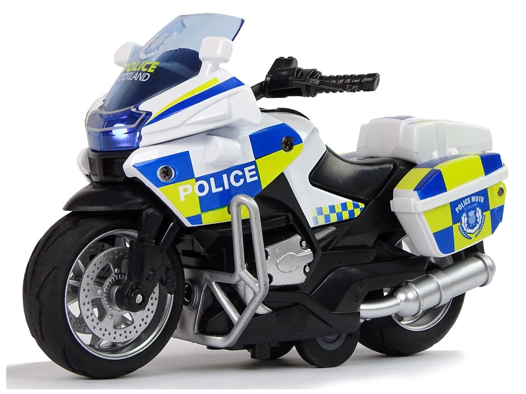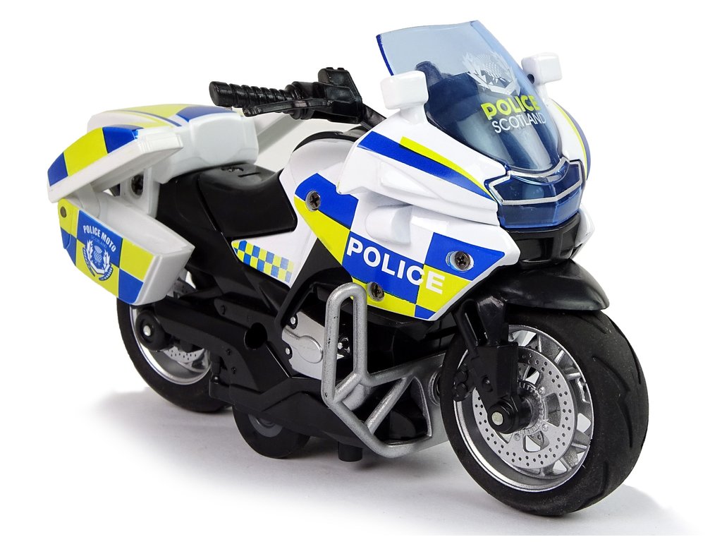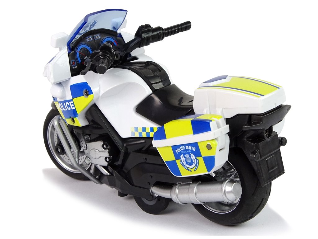 Vzhled policejní motorky je propracován do nejmenších detailů. Má všechny plastové díly s výraznými polepy a gumovými koly, které zaručují přilnavost k zemi. Motorka je vyrobena v měřítku 1:14.