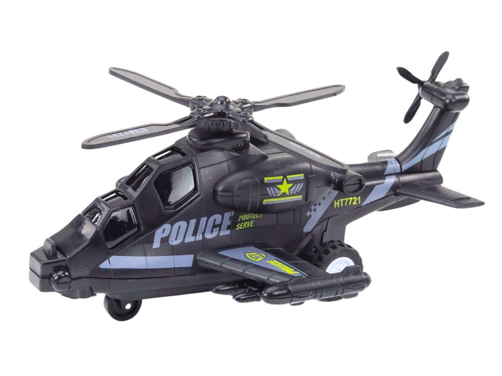 Policjní vrtulník bílý nebo černý s třecím pohonem se světlem a zvukem