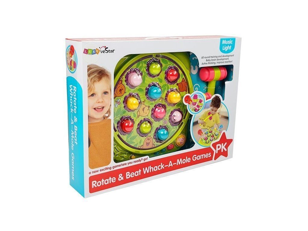 Plácni krtka je zábavná hra, která prozkouší u dětí jejich rychlost. Tato hra rozvíjí koordinaci pohybů rukou, postřeh, trpělivost a soustředění. Dokonale zabaví i na několik hodin, a navíc má zvukové efekty. Hra se snadno zapíná pomocí tlačítka ON/OFF a můžete ji na chvíli stopnout.