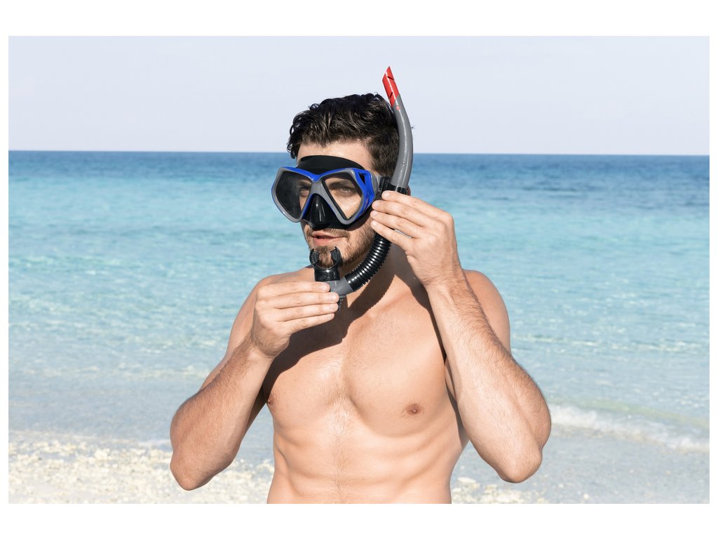 - Obsahuje kryt zabraňující vniknutí vody do šnorchlu