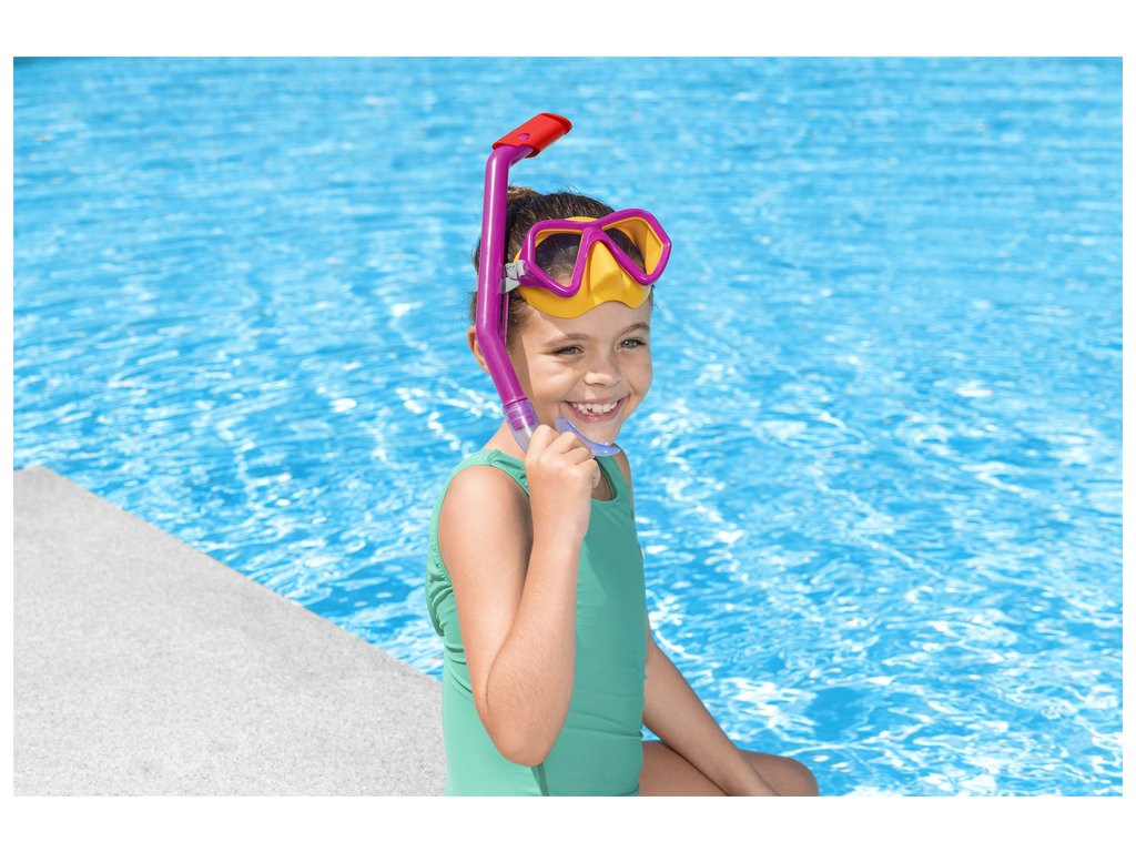 Tato sada je vhodná pro všechny plavce ve věku od 3 do 6 let a skládá se z masky a šnorchlu. Maska neobsahuje latex a díky nastavitelnému popruhu dokonale padne na hlavu dítěte.
