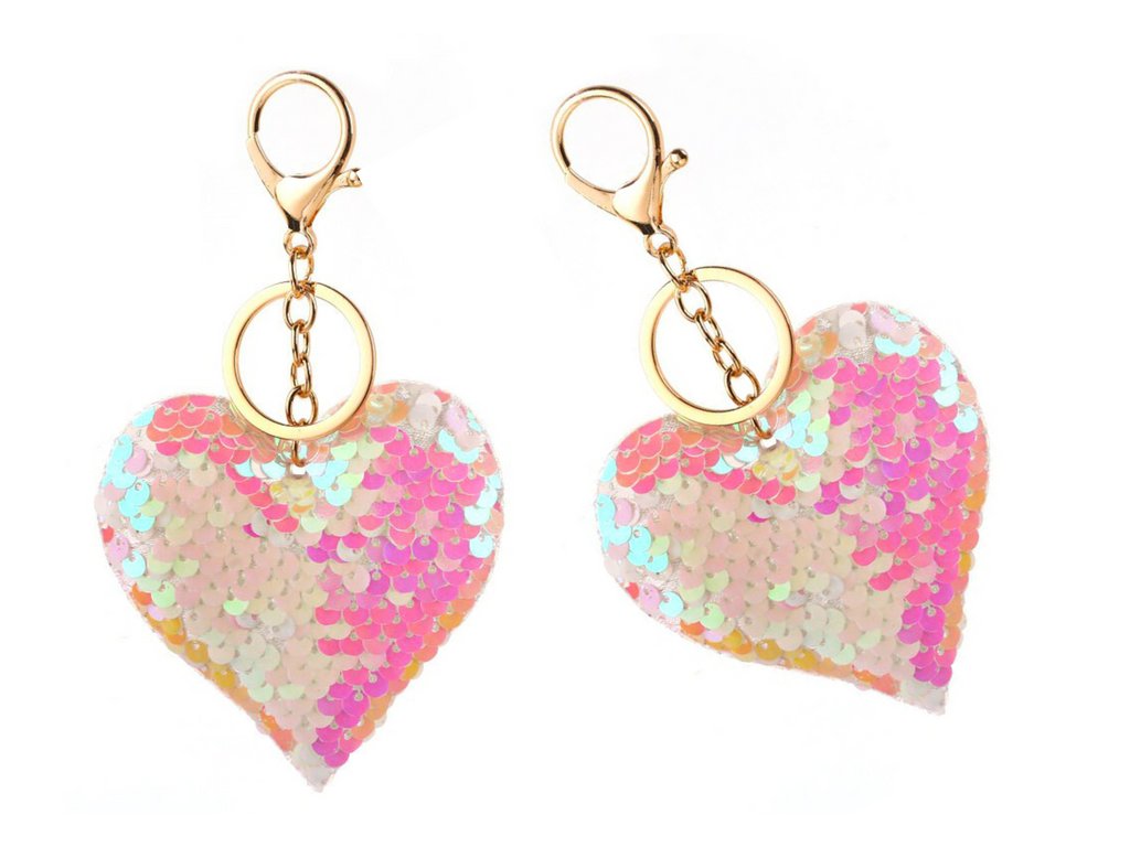 Přívěšek ve tvaru srdce s dvoubarevnými flitry je elegantním a stylovým doplňkem. Vyrobený ve tvaru srdce, přívěšek je ozdobený světle růžovými flitry, které mu dodávají elegantní a zářivý vzhled.