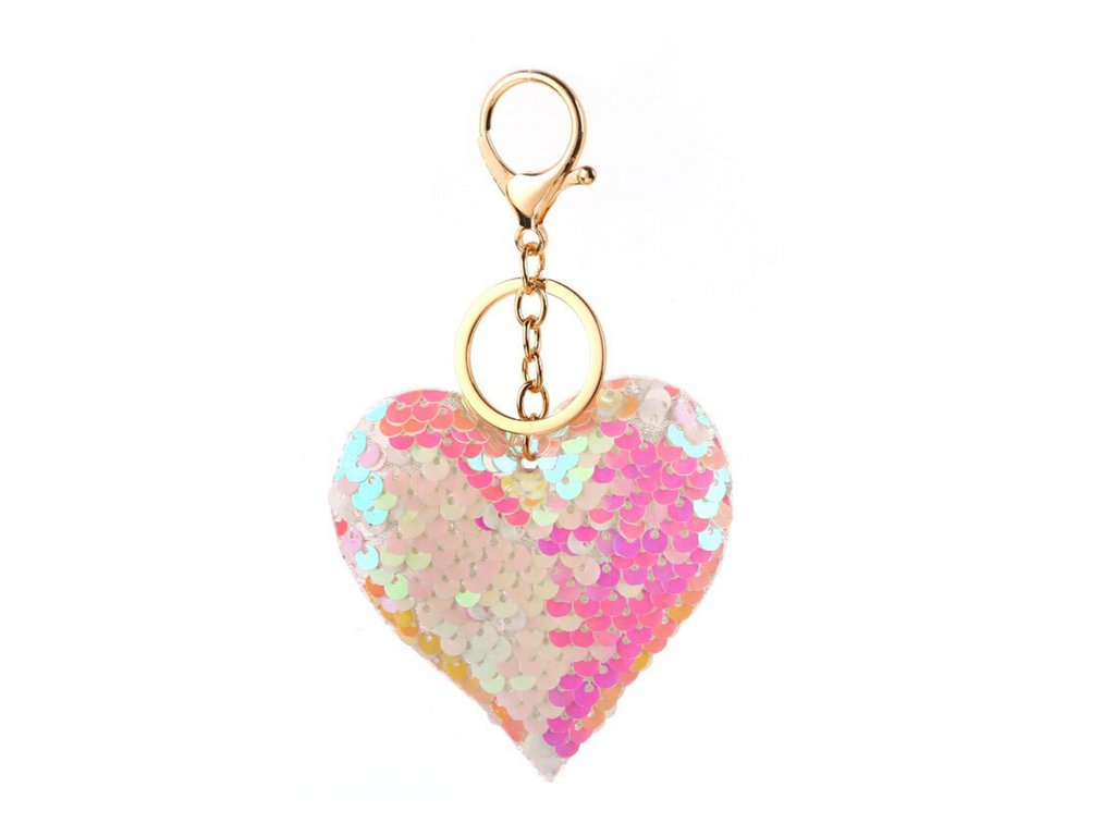 Přívěsek srdce s oboustrannými flitry bílý růžový