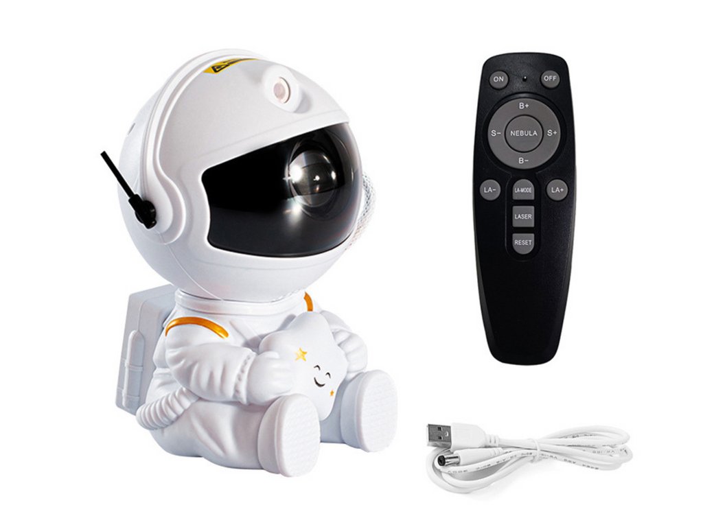 Projektor hvězd Astronauta je výjimečná dekorace, která vnese kouzelnou atmosféru do každého interiéru, zejména v dětském pokoji. Díky této lampičce se strop, stěny a okna promění v hvězdné nebe, které vytvoří jedinečnou atmosféru napomáhající relaxaci a klidnému usínání. Lampička dokonale napodobuje hvězdy a galaxie, umožňujíc si užívat krásu nočního nebe v domácím prostředí.
