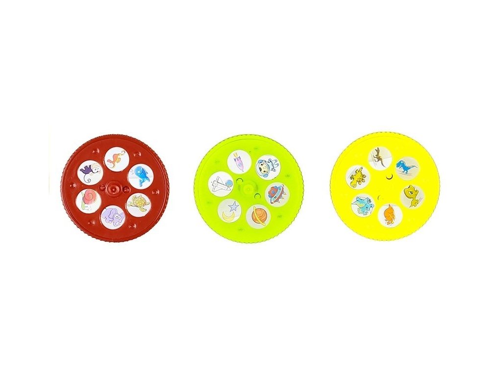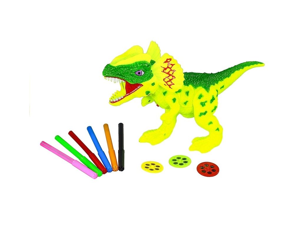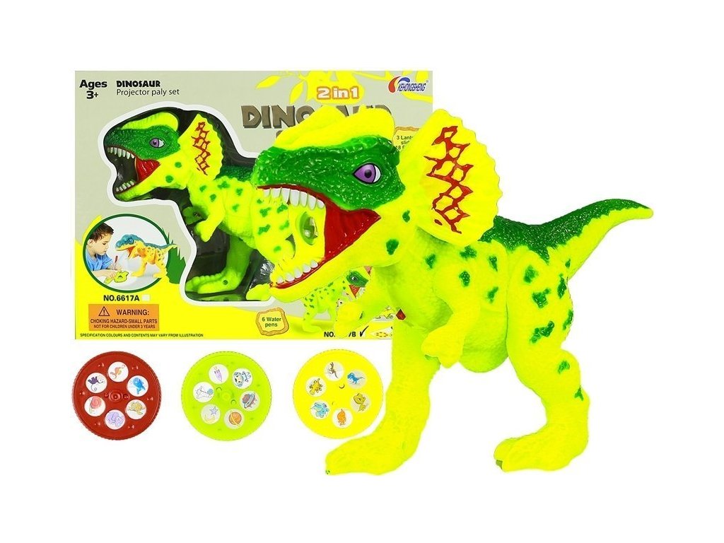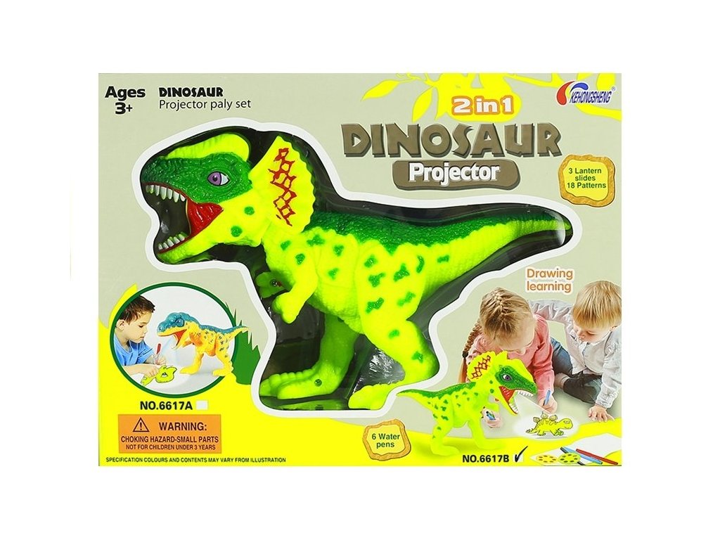 Zobrazuje obrázky k vybarvení! Projektor, dinosaurus na hraní a lampička.