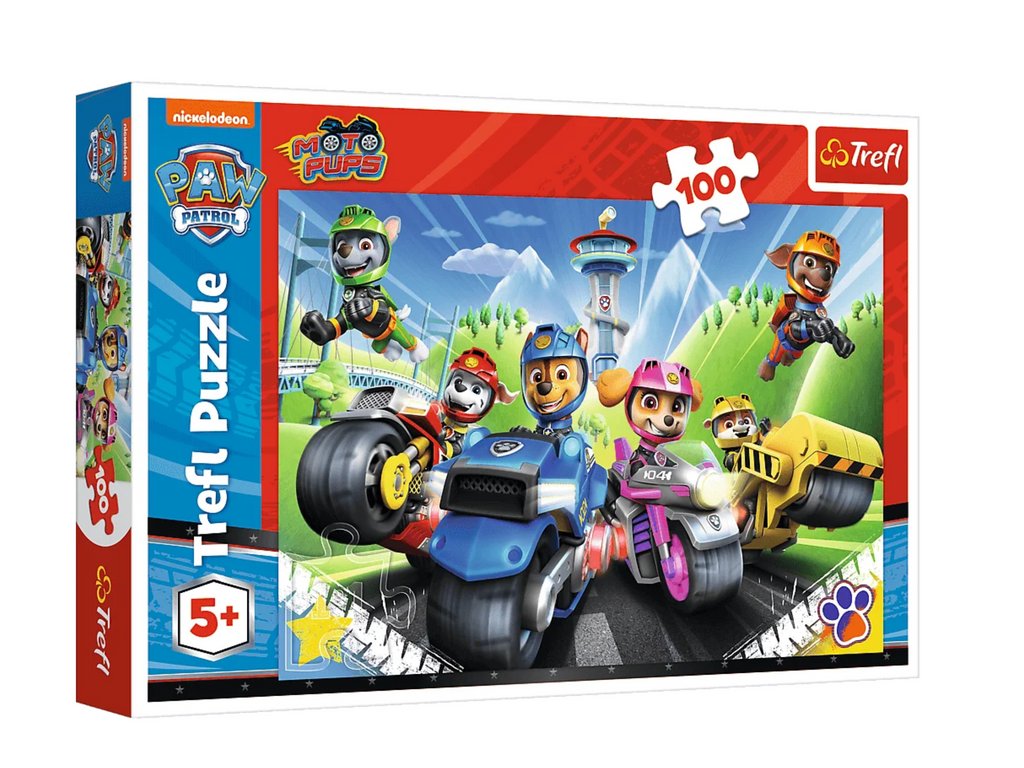 Puzzle "Tlapková patrola na motorkách" od značky Trefl obsahují 100 dílků a jsou určeny pro fanoušky oblíbené pohádky Tlapková patrola. Vyrobeny z kvalitních materiálů a speciálního papíru odrážejícího světlo pro snadnější skládání.