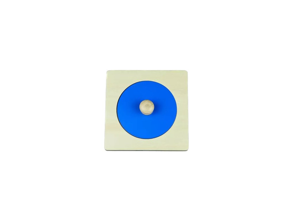 Jednoduchá dřevěná pomůcka sestávající z desky a vyjímatelného kruhového dílu. Kruh má uprostřed drobnou úchytku, která umožní dítěti pevné uchopení a vyjmutí tvaru z výřezu.