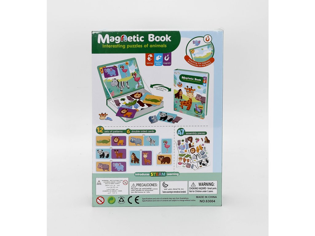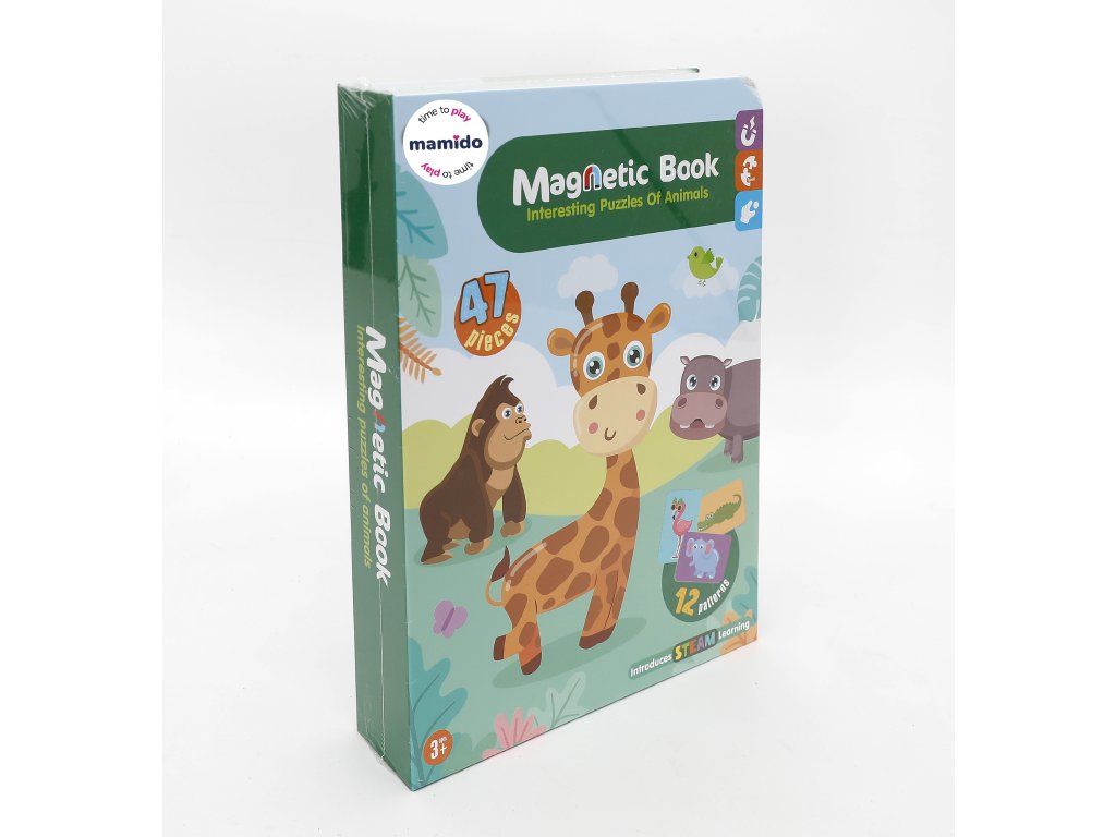 Součástí balení je 47 magnetických dílků a 12 vzorových karet, které děti provedou skládáním krok za krokem. Díky praktickému knižnímu provedení je hračka snadno přenosná a ideální na cesty – vše se ukládá přímo do pevného obalu ve tvaru knihy.