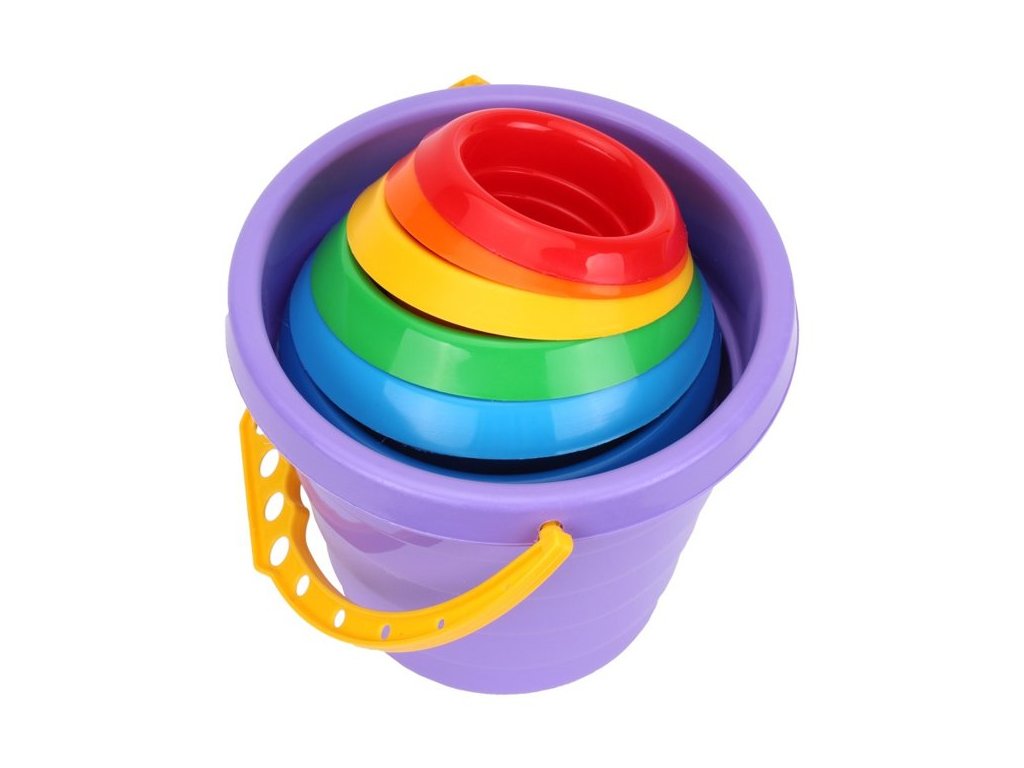 Pyramida v barvách duhy je hračka, která je vynikající pro rozvoj batolete. Skládá se z kelímků v různých barvách. V horní části hračky je nejmenší kelímek. Jsou vyrobeny z bezpečného, netoxického materiálu, který se vyznačuje robustností a odolností. Pyramida má velmi racionální, zaoblený tvar, což přispívá k úrovni bezpečnosti, která plyne z používání předmětu.