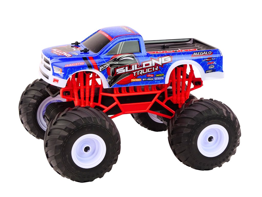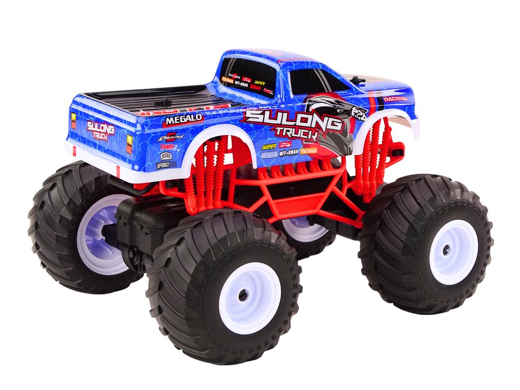 Modré terénní auto je snem každého nadšence z dálkově ovládaných vozidel. Postaveno v měřítku 1:12, zaujme jak uživatele, tak i kolemjdoucí.