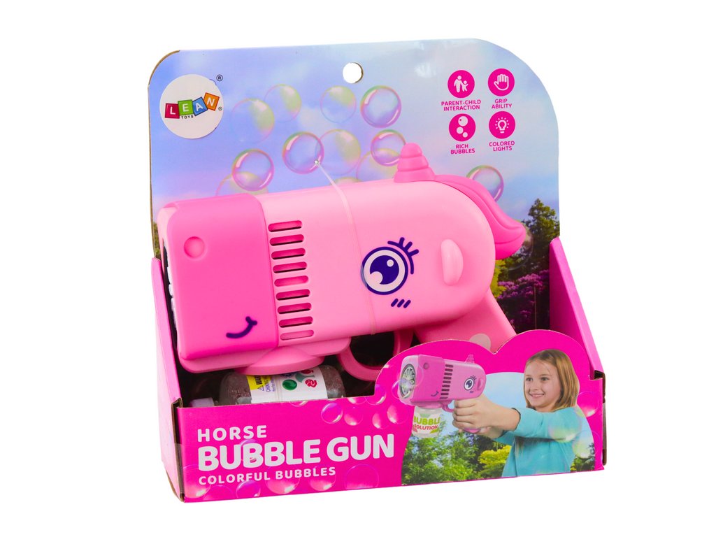 Stačí stisknout tlačítko, a pistole začne chrlit barevné mýdlové bubliny, čímž podporuje dětskou fantazii. Součástí balení je i speciální tekutina na bubliny, kterou lze snadno připojit k pistoli, což zajišťuje pohodlnou hru. Hračka je vyrobena z bezpečných a odolných materiálů.