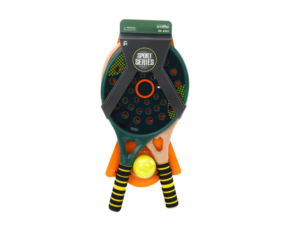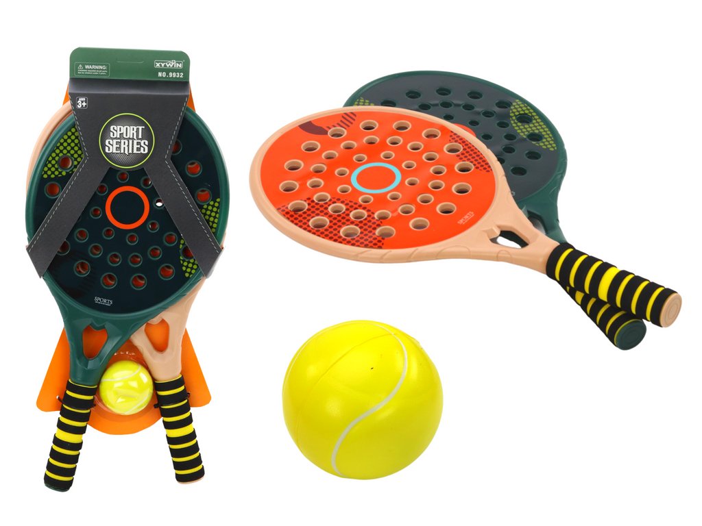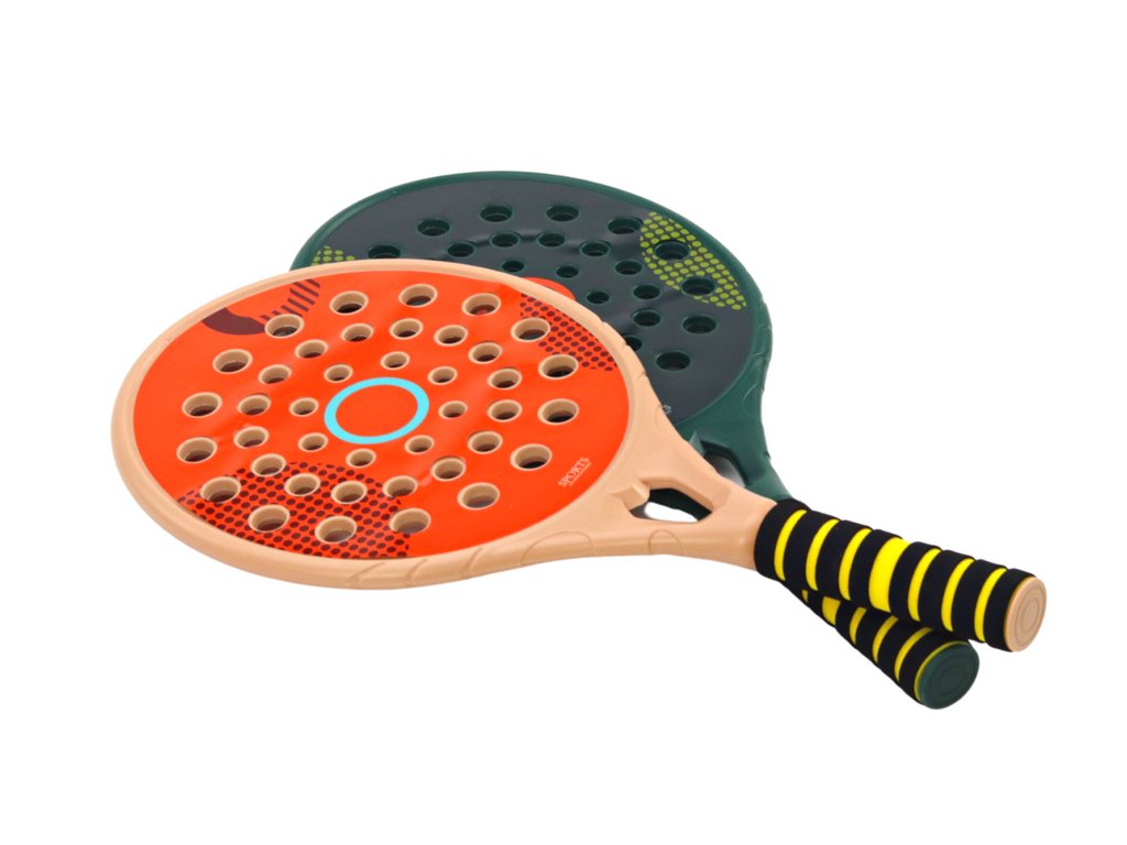 Sada 2 pálek pro sportovní hru padel v elegantních zelených a krémových barvách. Pálky jsou vyrobeny z vysoce kvalitního plastu, pevné a robustní. Místo síťky (tak jako u tradiční tenisové rakety) je použit plast s otvory.