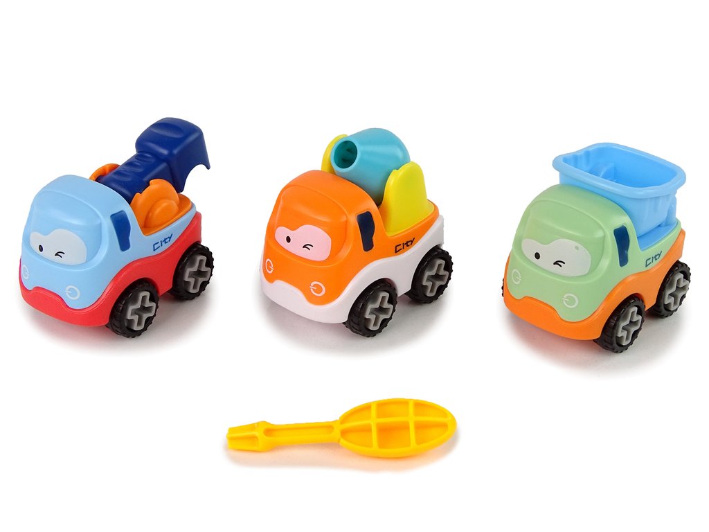 Sada 3 stavebních autíček k odšroubování je nabídka pro každého malého kluka, který miluje kutily nebo se zajímá o vozidla. Sada obsahuje 3 barevná stavební auta s legračními obličejíčky na přední straně. Najdete zde sklápěč, domíchávač betonu a jeřáb.