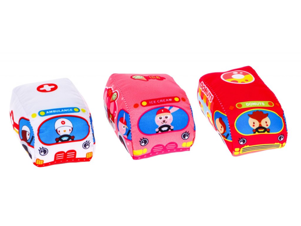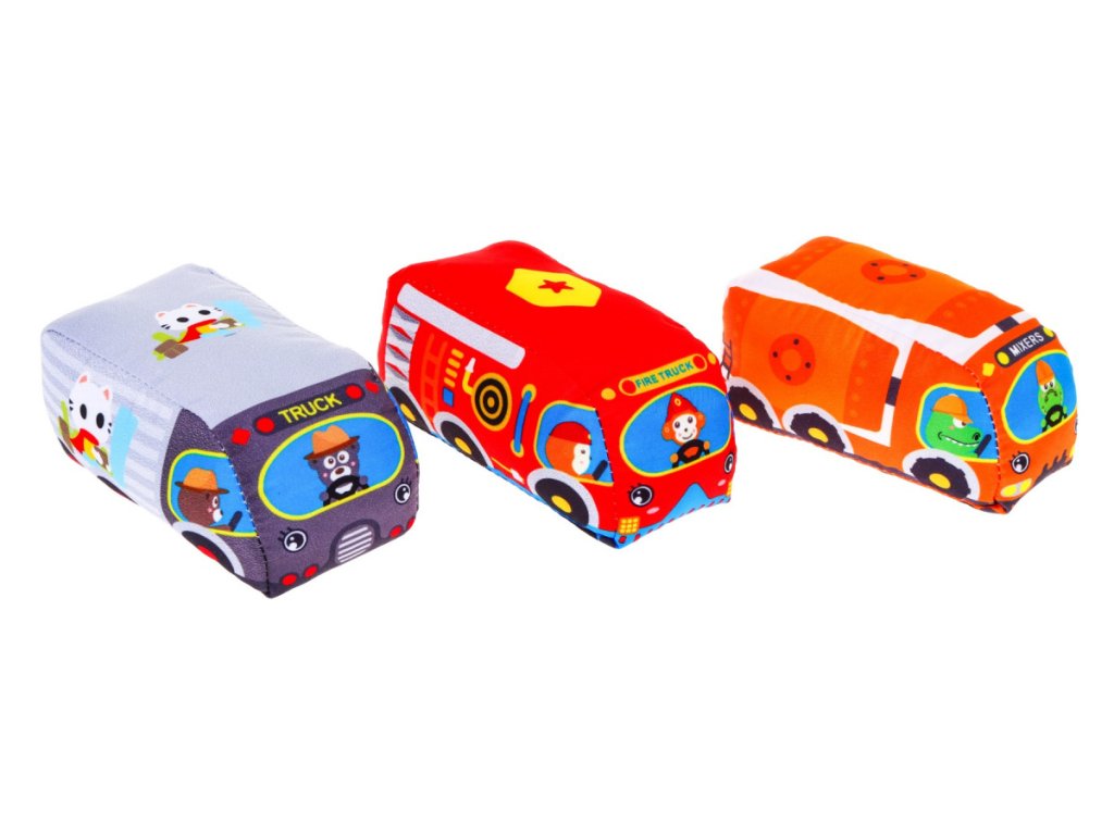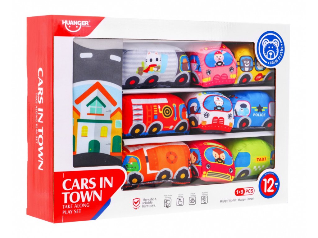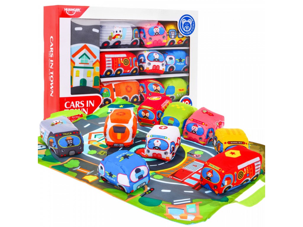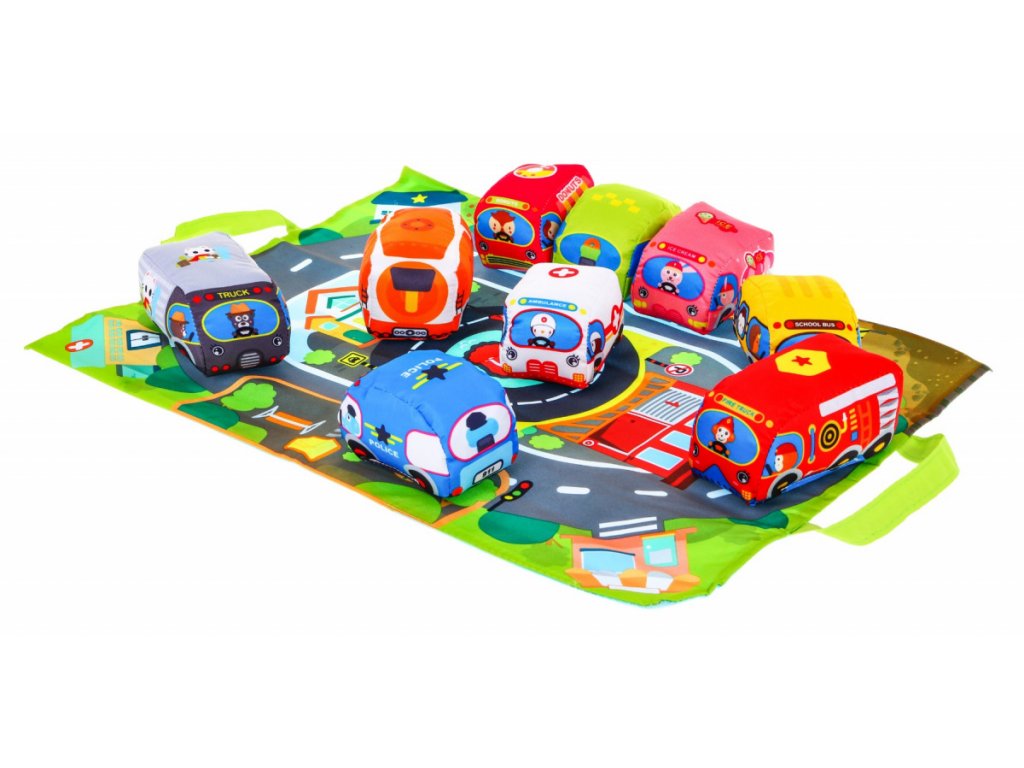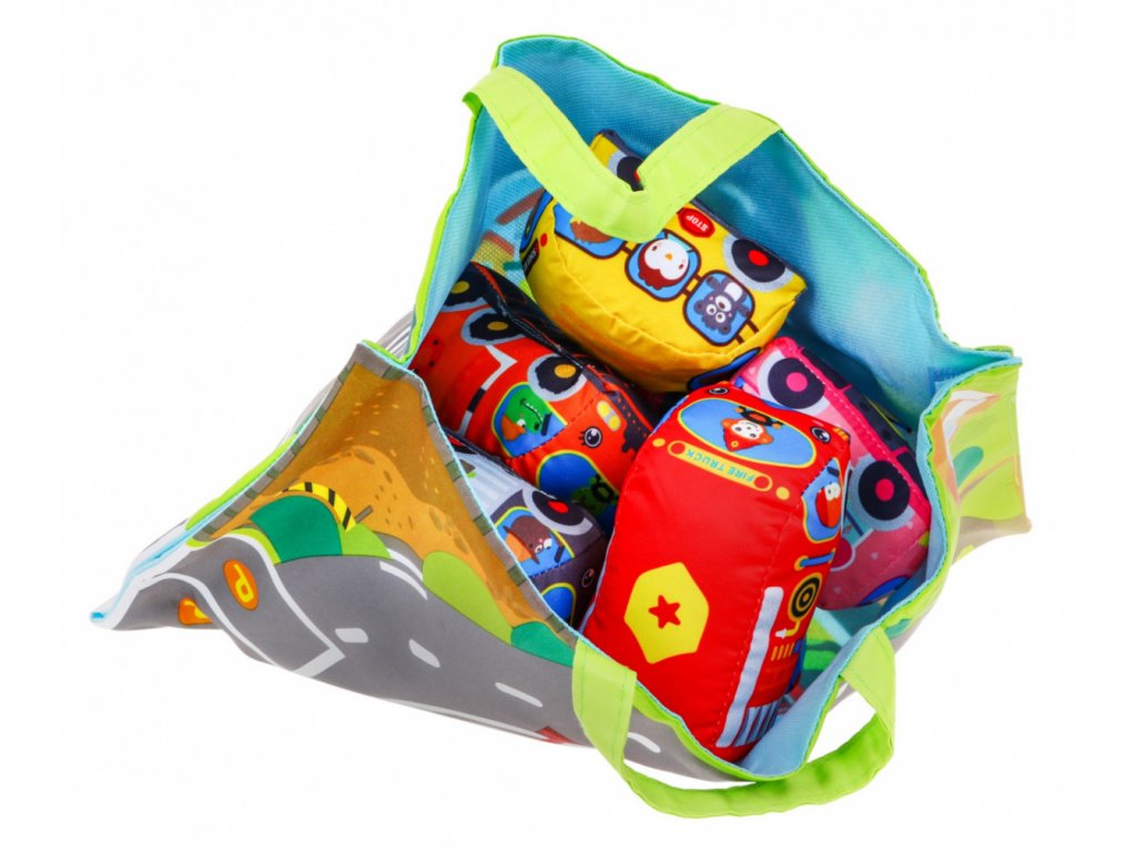 Dětská sada autíček osloví každé dítě. Sada se skládá z 9 látkových autíček, které jsou vyrobené z materiálu příjemného na dotek. Autíčka vydávají zvuk a tím upoutají pozornost dítěte. V balení se nachází podložka, kterou jde složit a použít jako tašku na ukládání a přenášení autíček.