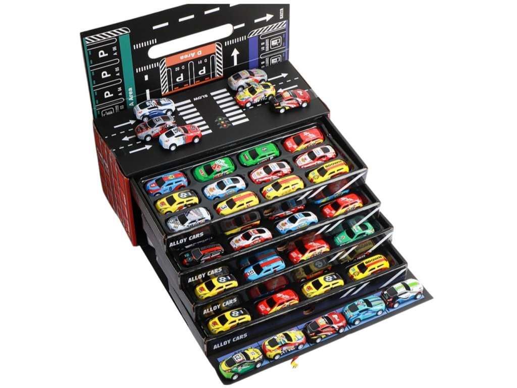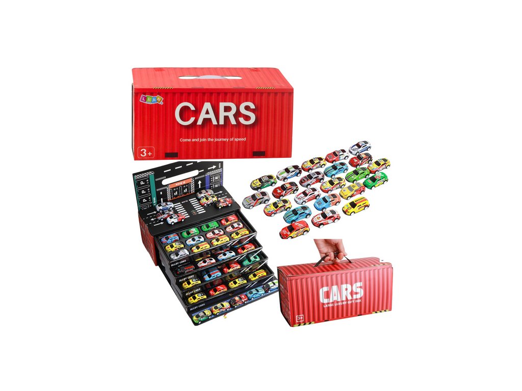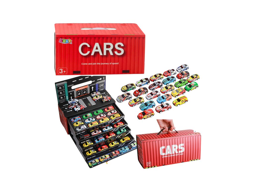 Tato sada 48 miniaturních autíček je ideální pro malé fanoušky motorismu. Autíčka jsou zabalena v praktickém kontejneru, který zároveň slouží jako kufřík s rukojetí - díky tomu je lze snadno skladovat, přenášet a zpestřit si hru kdekoli.
