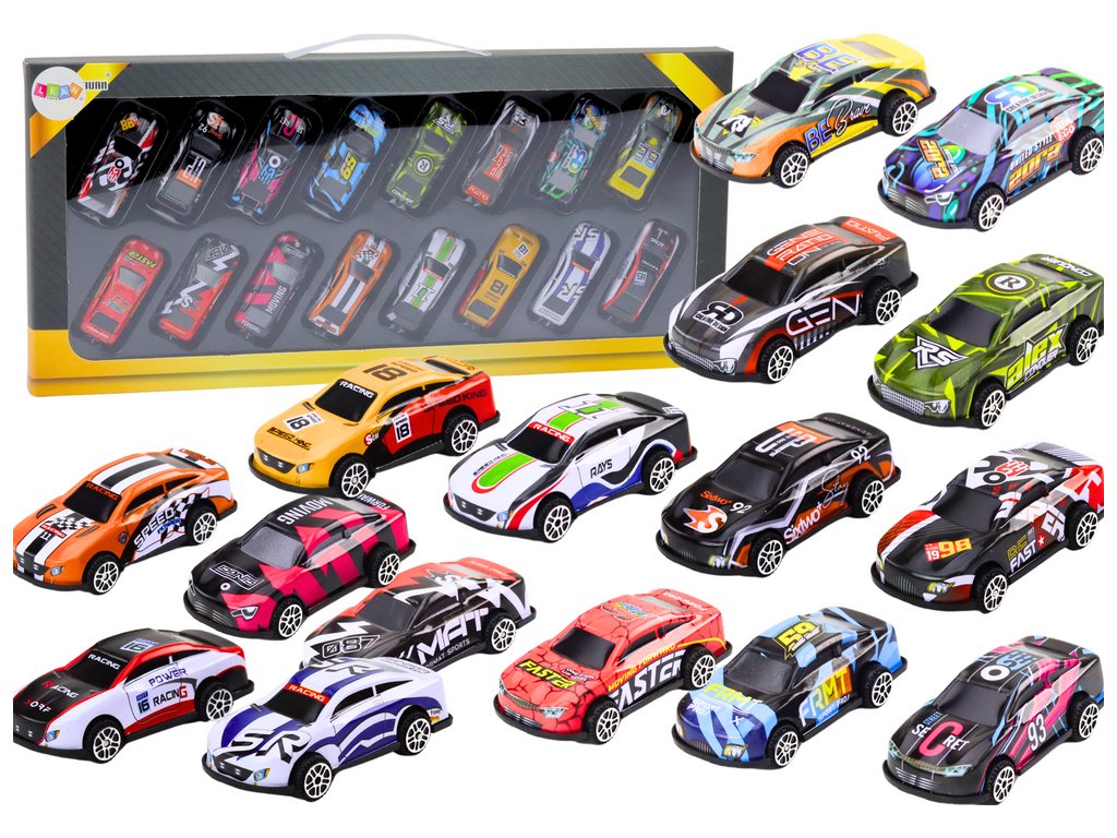 Sada barevných autíček s pohonem 16 kusů
