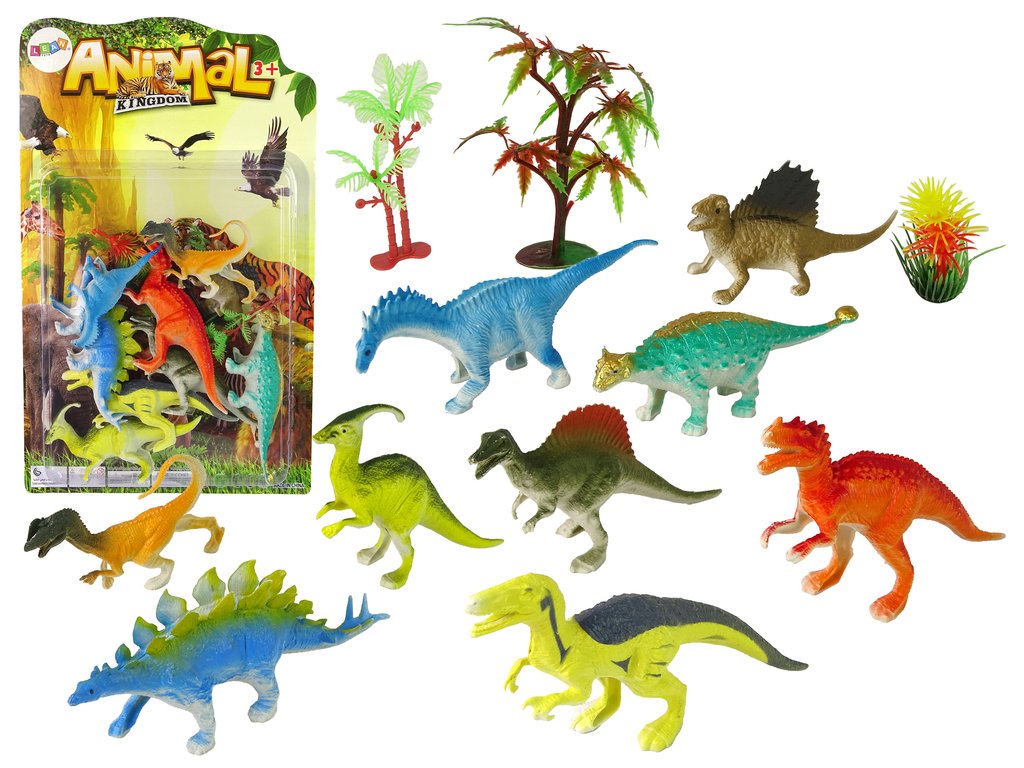 Sada dinosaurů se skládá z 9 barevných figurek, z nichž každá představuje jiný druh prehistorických obrů. Děti mohou objevovat jejich fascinující svět a hrát si s jejich různorodými tvary. Každá figurka je pečlivě vyrobena, aby odrážela charakteristické rysy druhu, což dodává hře autentičnost. Všechny figurky jsou vyrobeny z plastu, což zajišťuje dlouhou a trvanlivou zábavu.