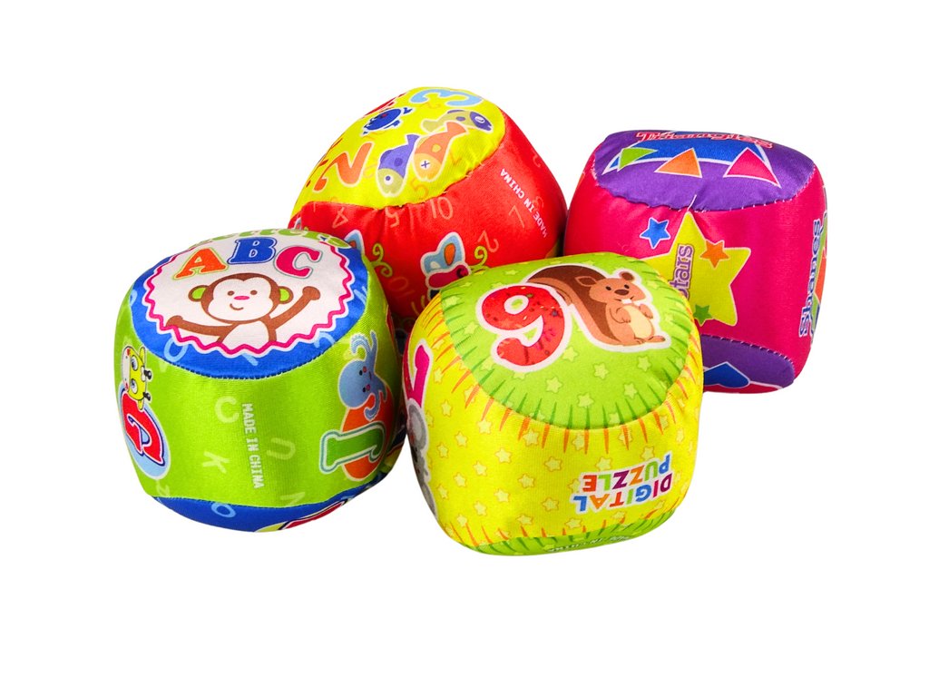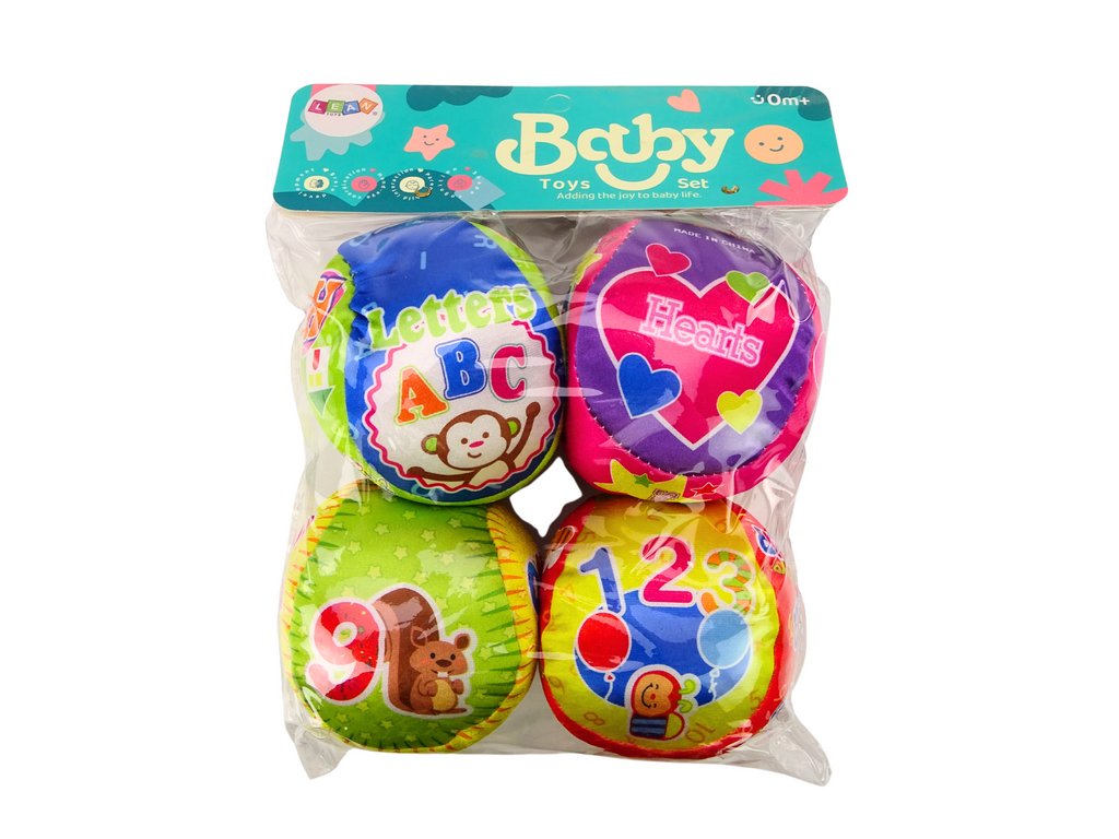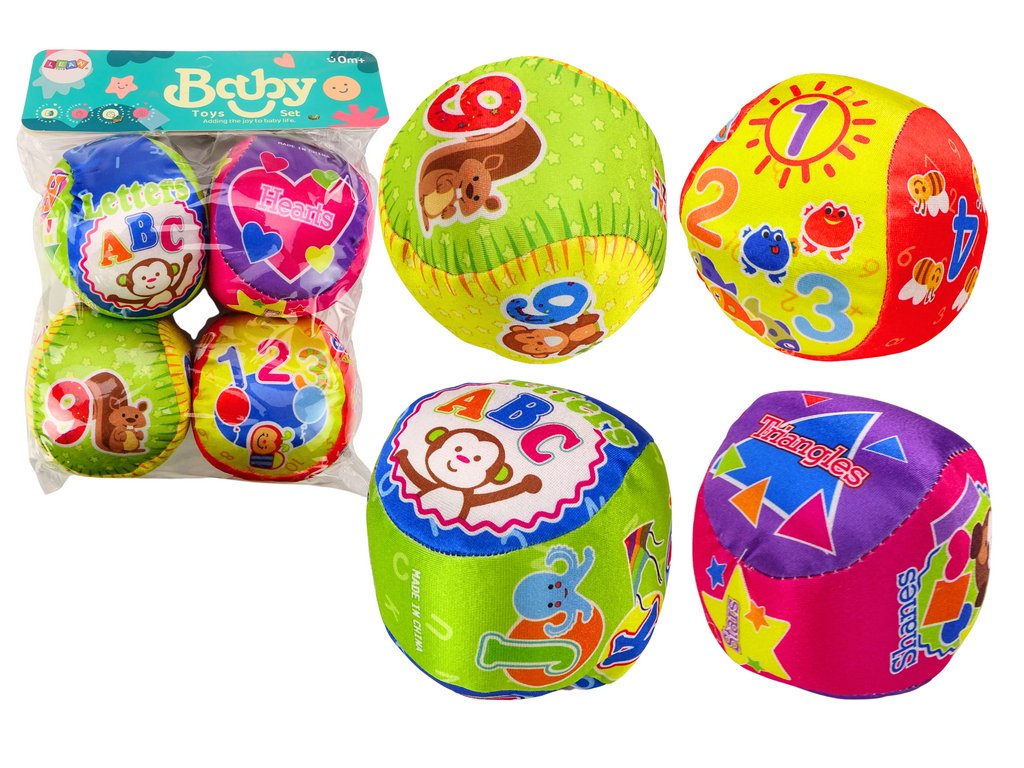 Zestav 4 měkkých míčků pro děti je vzdělávací a interaktivní hračka, která kombinuje učení a zábavu. Každý míček v tomto setu má unikátní motivy, které podporují učení skrze hru. Barevné ilustrace zvířátek a čísel pomáhají dětem při učení počítání a rozpoznávání různých zvířat. Míček s obrázky základních geometrických tvarů, každý označený v angličtině, uvádí děti do světa cizího jazyka a geometrie. Písmena abecedy ozdobená obrázky zvířat usnadňují učení písmen a jejich zvuků zábavným způsobem.