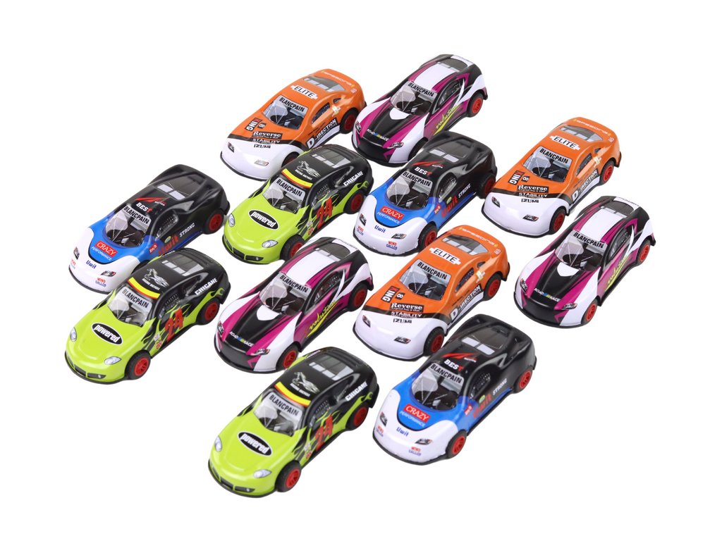 Sada barevných sportovních autíček 1:55 s třecím pohonem 12 kusů