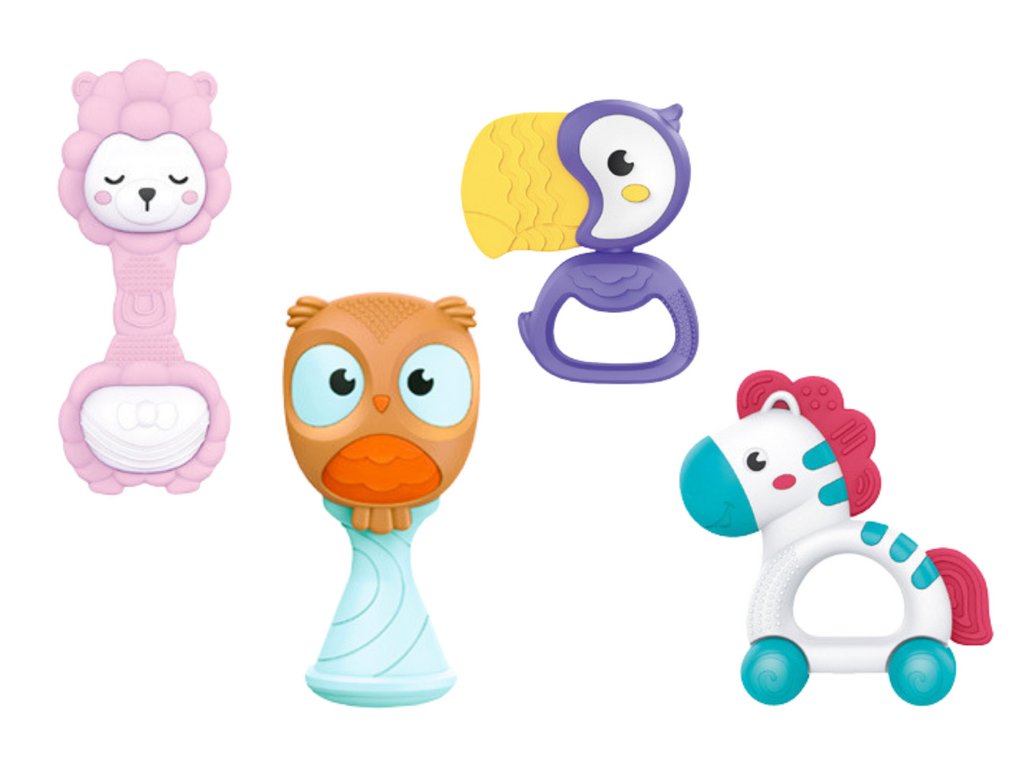 Navíc, gumové části umístěné na chrastítkách slouží jako kousátka, které zmírňují potíže spojené s růstem zoubků a podporují rozvoj jemné motoriky prostřednictvím žvýkání a manipulace s předměty.