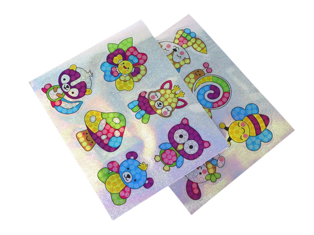 Sada s doplňky pro vytváření jedinečných samolepek je ideální pro malé umělce. Inovativní technika vyšívaní umožňuje vytvářet obrázky nalepením malých diamantů na samolepky s roztomilými zvířecími motivy, které jsou součástí balení.