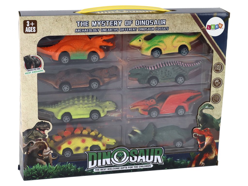 Každé autíčko je jiný dinosaurus s jedinečným tvarem a barvou, což podněcuje představivost a rozvíjí znalosti dětí o prehistorických tvorech. Dinosauří auta se sama pohybují díky třecímu pohonu. Tato autíčka byla vytvořena s ohledem na bezpečnost dětí, jsou odolná a mají dlouhou životnost.