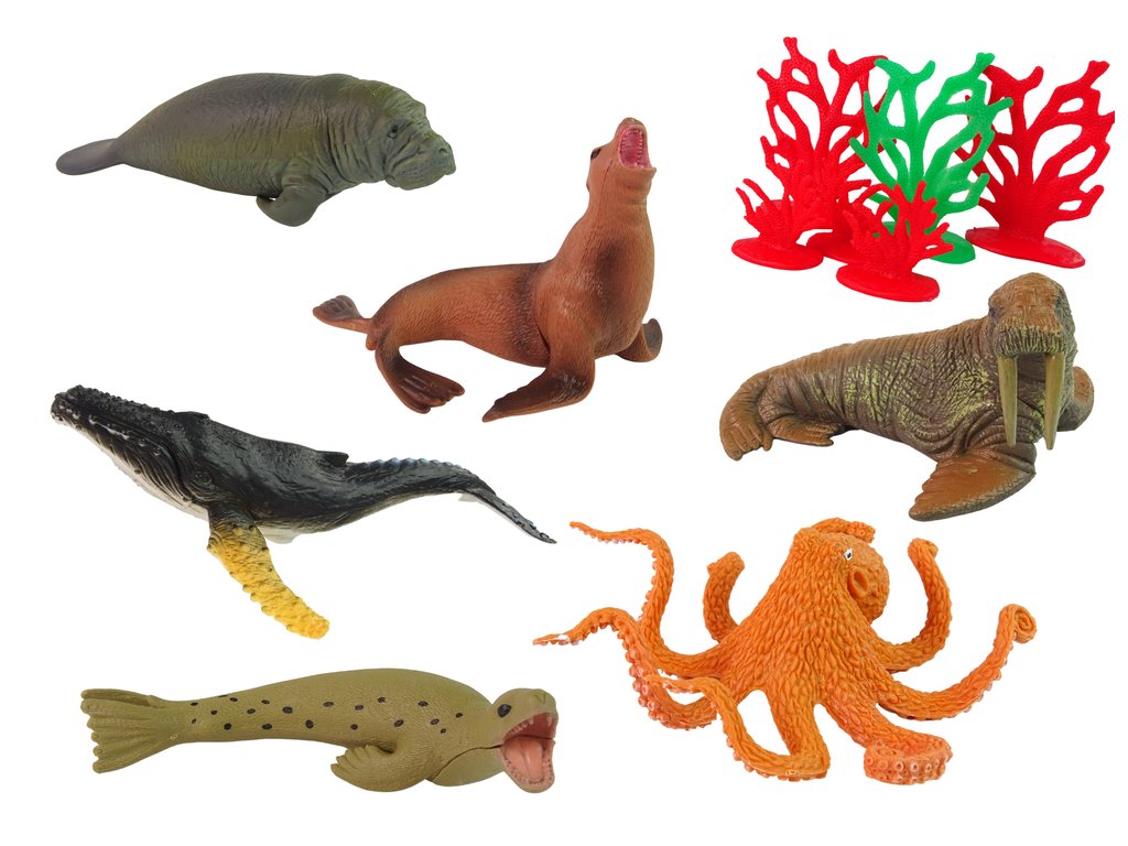 Figurky jsou vyrobeny s maximální pečlivostí a dokonale odrážejí realistický vzhled těchto tvorů. Sada navíc obsahuje mořské rostliny a kameny, aby si vaše dítě mohlo ve svém pokojíčku vytvořit realistický podmořský svět.