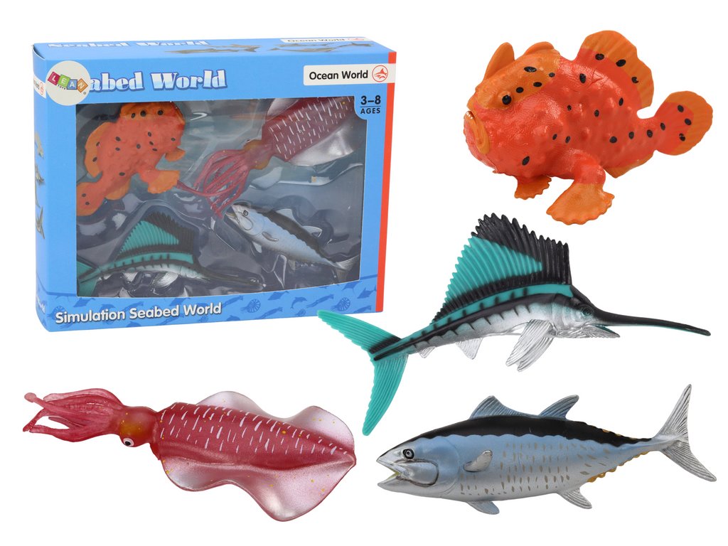 Sada figurek Mořští živočichové Oceán Ryby Kalamář 4 Kusy