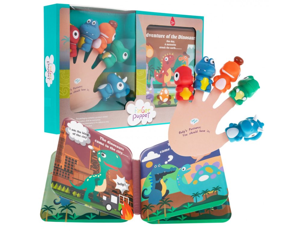 Tato sada prstových maňásků a měkká knížka o dinosaurech je určena pro děti od 3 let. Prstoví maňásci jsou pro děti skvělou zábavou a zároveň účinnou vzdělávací pomůckou. S touto sadou budou moci děti nebo dospělí hrát divadelní hry, ve kterých jsou hlavními postavami dinosauři.