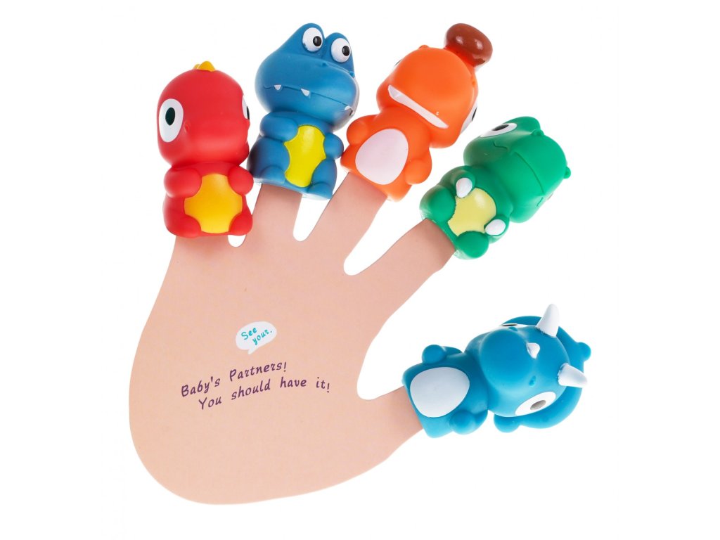 Sada gumových maňásku na prst s knížkou dinosauři