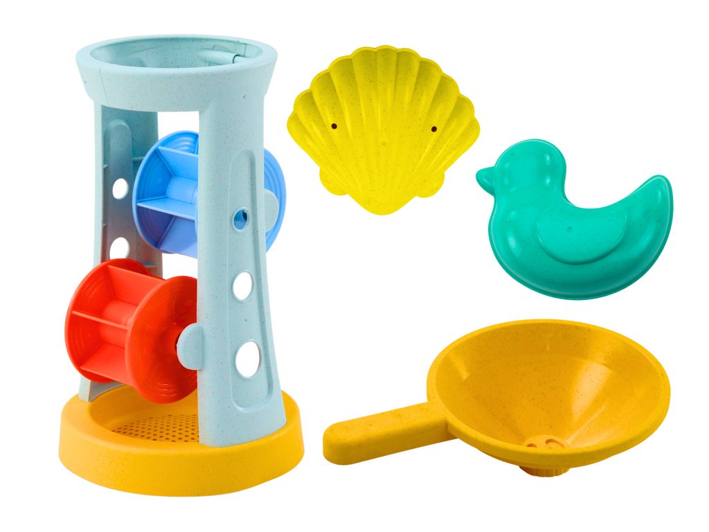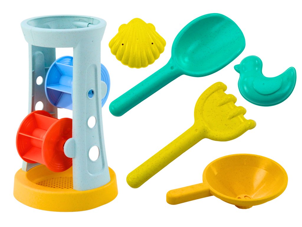 Sada hraček do písku nabízí skvělou zábavu pro děti při tvoření na čerstvém vzduchu. Obsahuje mlýnek s funkcí prosévání písku i pro experimentování s vodou, lopatku, hrábě a formičky na tvarování. Vyrobena z odolných materiálů, ideální na pláž, zahradu nebo pískoviště.