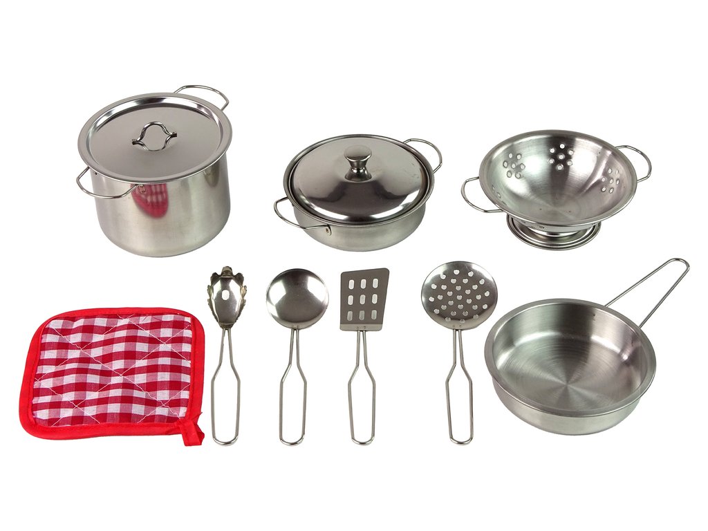 Naše sada kovových hrnců a kuchyňských doplňků je ideální hračka pro malé kuchaře. V této sadě najdete vše, co je potřeba pro napodobování úžasných kulinářských scén.