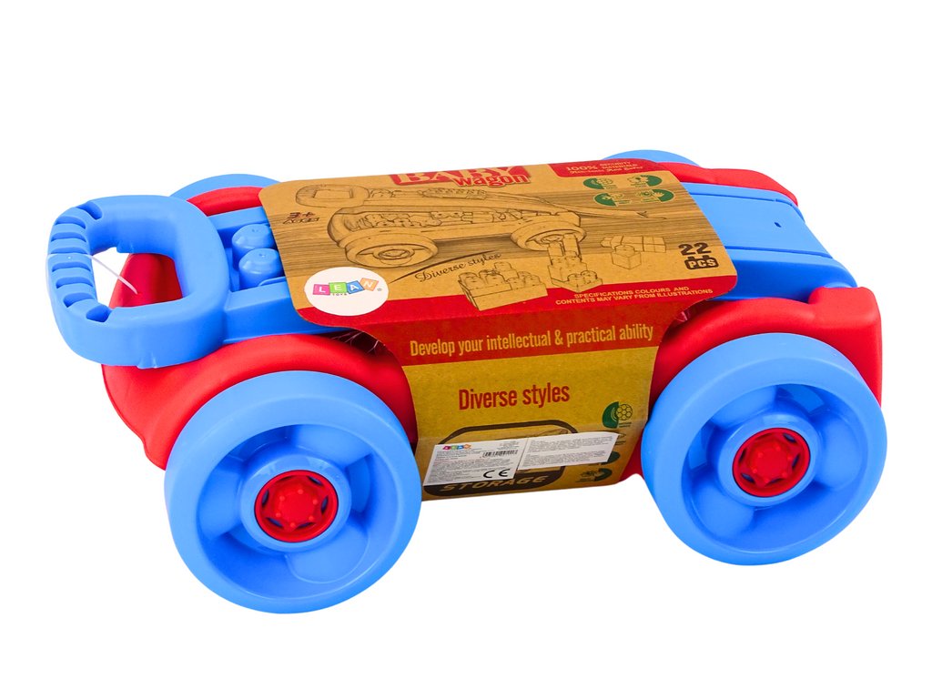 Vozík s kostkami je vynikajícím nástrojem pro zábavu a organizaci pro nejmladší objevitele. Robustní plastový vozík na čtyřech kolech v modro-červené kombinaci je lehký a snadno ovladatelný i pro malé děti. Díky tomu mohou děti snadno přepravovat své oblíbené kostky a vytvářet jedinečné konstrukce, kdekoliv si přejí.