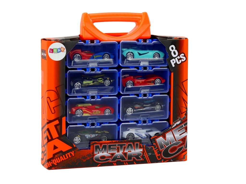 Všechna autíčka jsou pečlivě zabalena v praktickém kufříku, který je nejen estetický, ale i funkční. Kufřík je vybaven pevnou rukojetí, díky které dítě může své oblíbené hračky snadno přenášet kamkoli chce. Vnitřek kufříku obsahuje přihrádky, které zajišťují, že každé autíčko má své místo. Přihrádky jsou uzavíratelné, což zabraňuje pohybu autíček během přepravy.