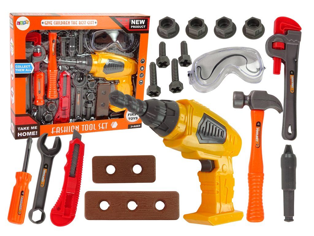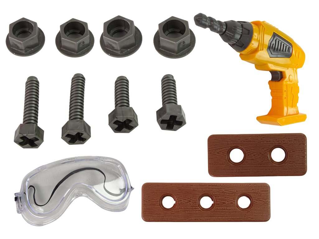 Hlavní hvězdou sady je bateriová vrtačka s výměnnými vrtáky, která po zapnutí otáčí vrtáky a vydává realistický zvuk šroubování. Děti si tak mohou připadat jako skuteční mistři dílny.