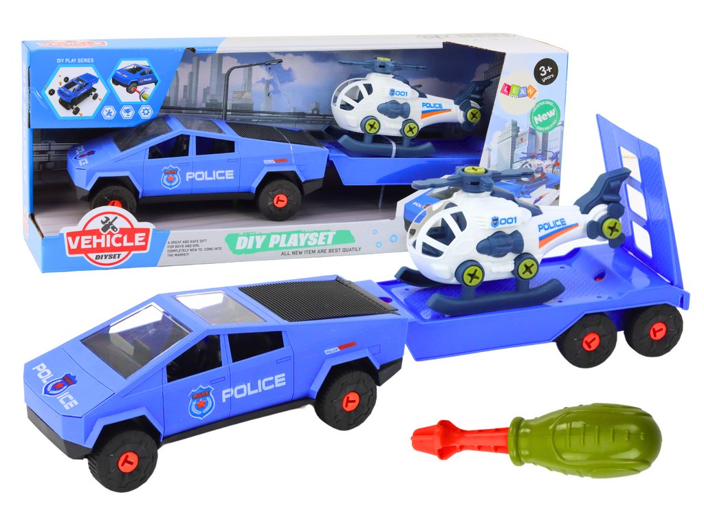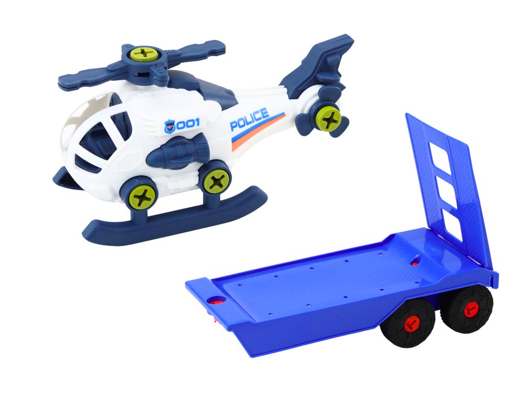 Sada Moderní auto s helikoptérou a přívěsem na rozebírání DIY modrá
