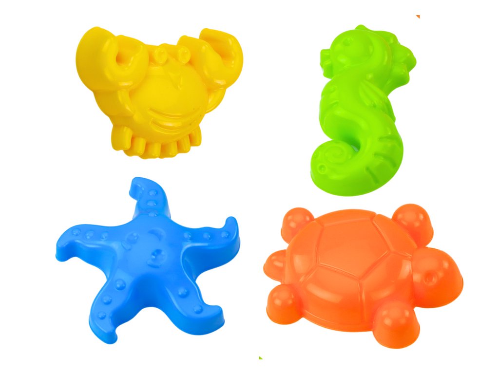 Velmi atraktivní součástí sady jsou čtyři formičky ve tvaru mořských živočichů. Formičky mají podobu mořského koníka, hvězdice, kraba a želvy. Celá sada je v různých jasných barvách, které přitahují pozornost dítěte.