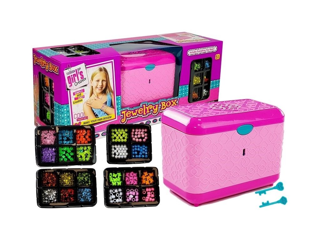 Sada různobarevných korálků a doplňků užitečných pro vlastní tvorbu šperků jistě osloví každou mladou dámu. Velká, kreativní sada se skládá z velkého množství prvků, stejně jako růžovo-fialového kufříku se zrcadlem uvnitř, které lze použít jako pouzdro pro ukládání ručně vyráběných dekorací a doplňků. Tato báječná sada cetek jistě splní sen každé dívky, která má ráda ruční práce a módu.