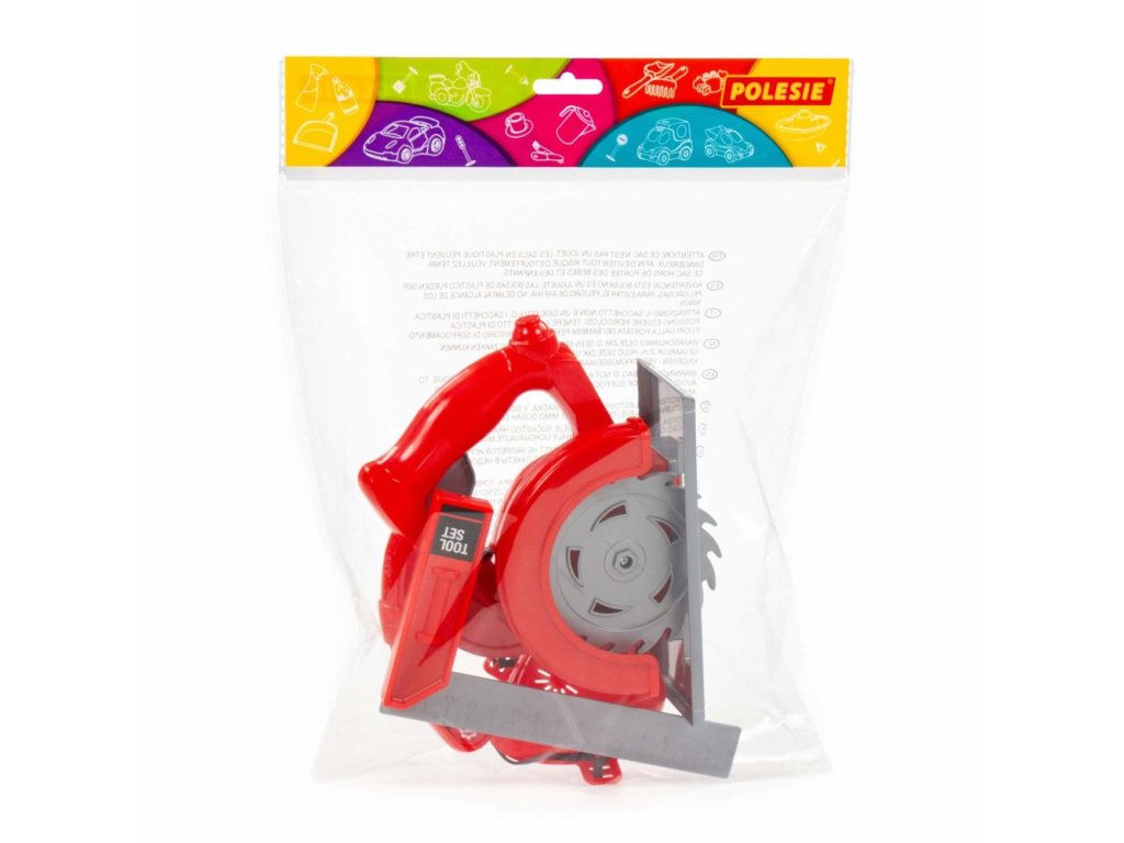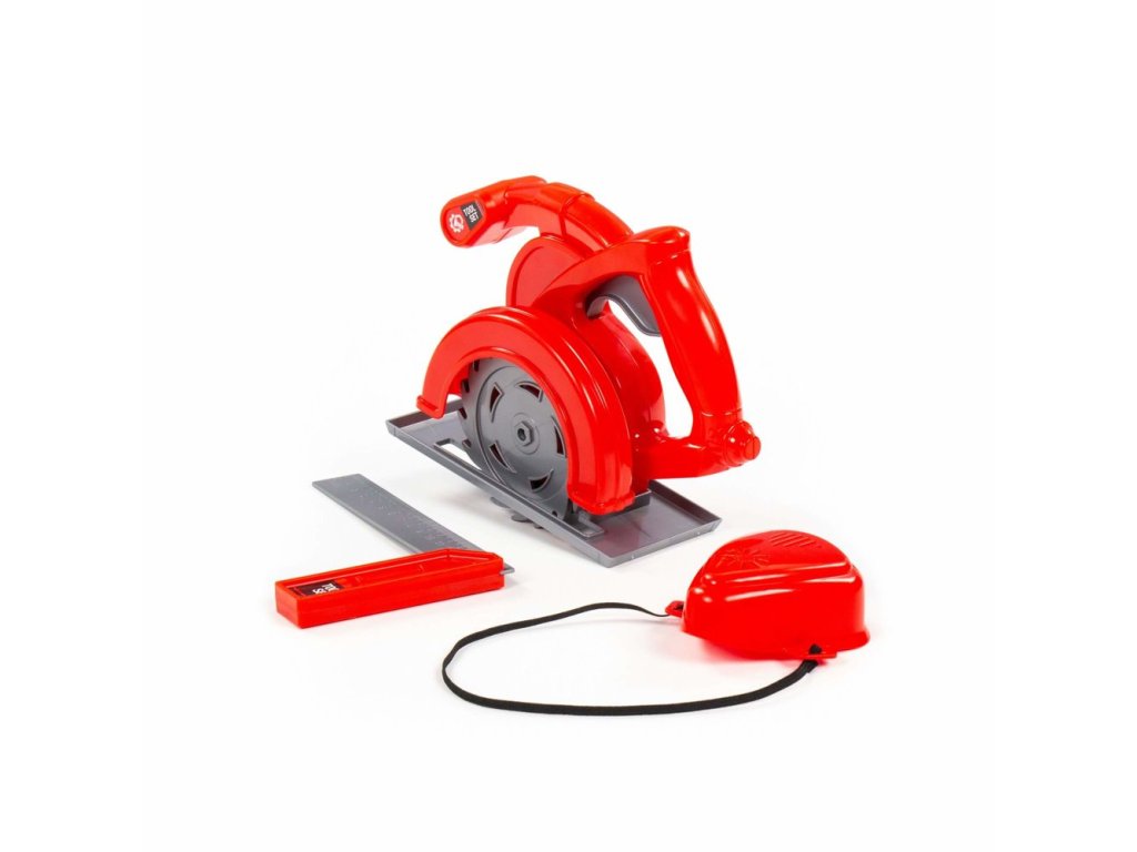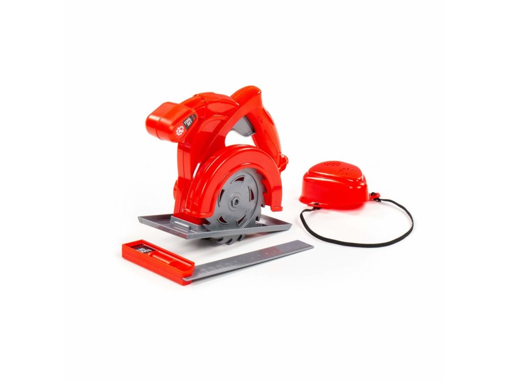 Dětská sada nářadí obsahuje okružní pilu, úhloměr a respirátor. Vytvořte si vlastní dílnu. Sbírejte další nástroje a začněte si hrát na kutily. Dítě se bude nejen cítit zodpovědné, ale hra také podpoří jeho rozvoj. Díky hře se naučí kutilství, rozvine manuální dovednosti a probudí ve svém zvědavosti na svět. V dané sadě je okružní pila, na které je tlačítko a po jeho stisknutí se kotouč začne otáčet. Pro ochranu před pilinami a prachem sada obsahuje respirátor. Úhloměr vám umožní měřit vzdálenost a místo řezu. Celek je vyroben v červené barvě a dokonale padne do malých rukou vašeho dítěte. Sada poskytne mnohým malým pomocníkům neuvěřitelnou zábavu při hraní.