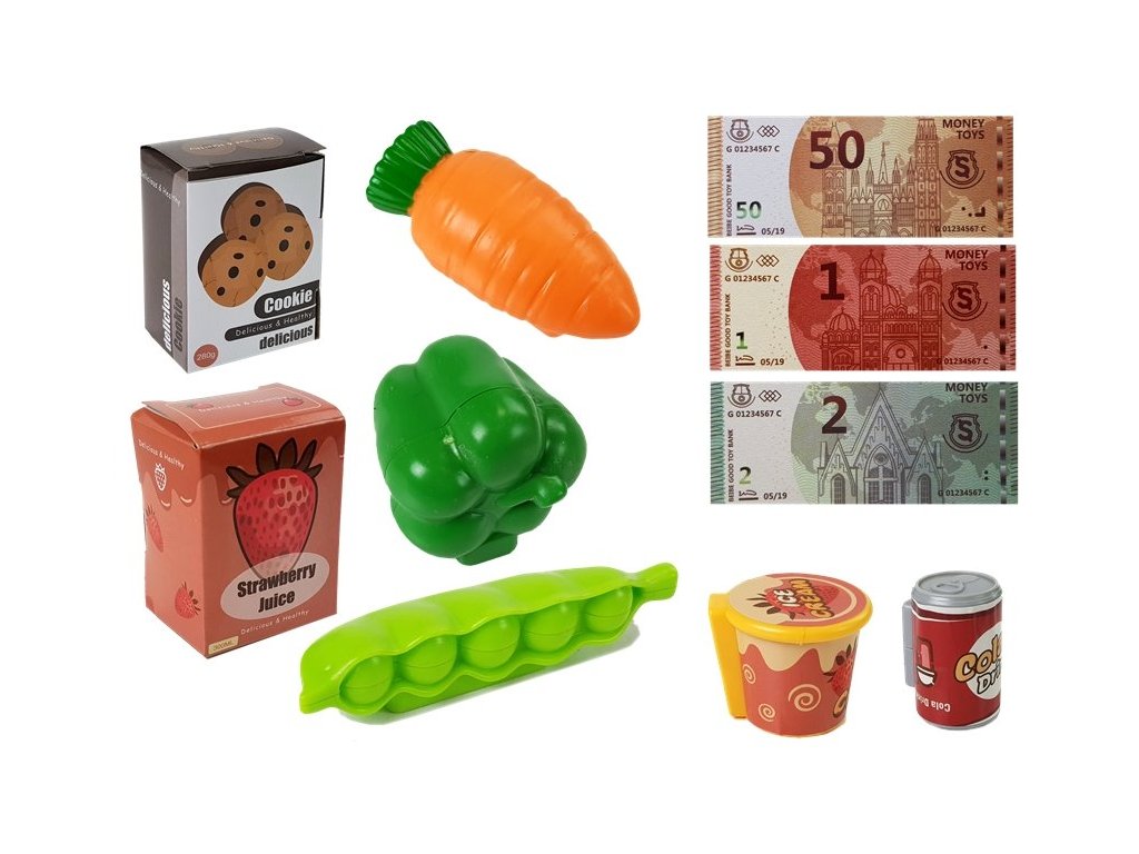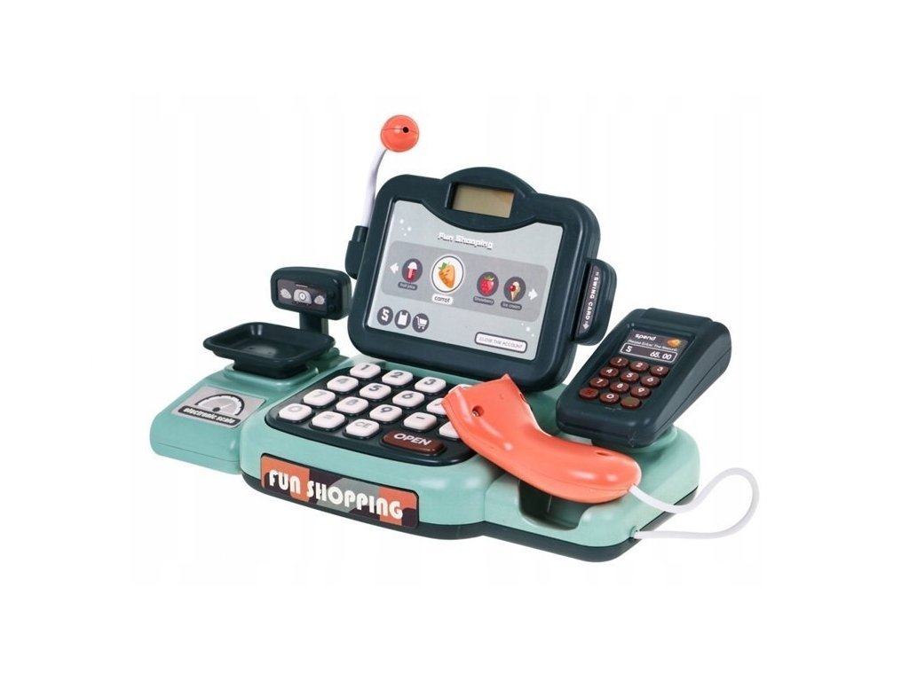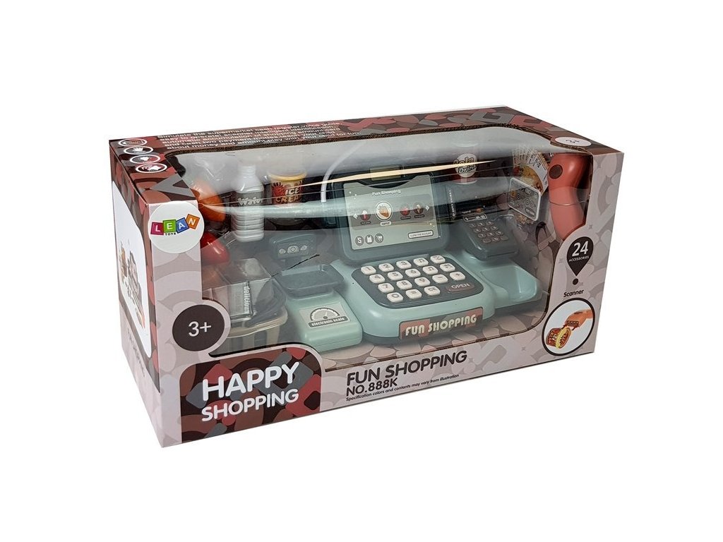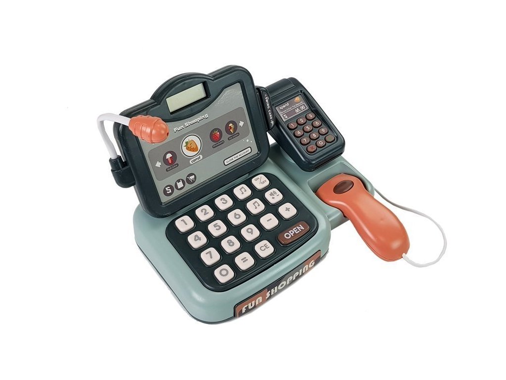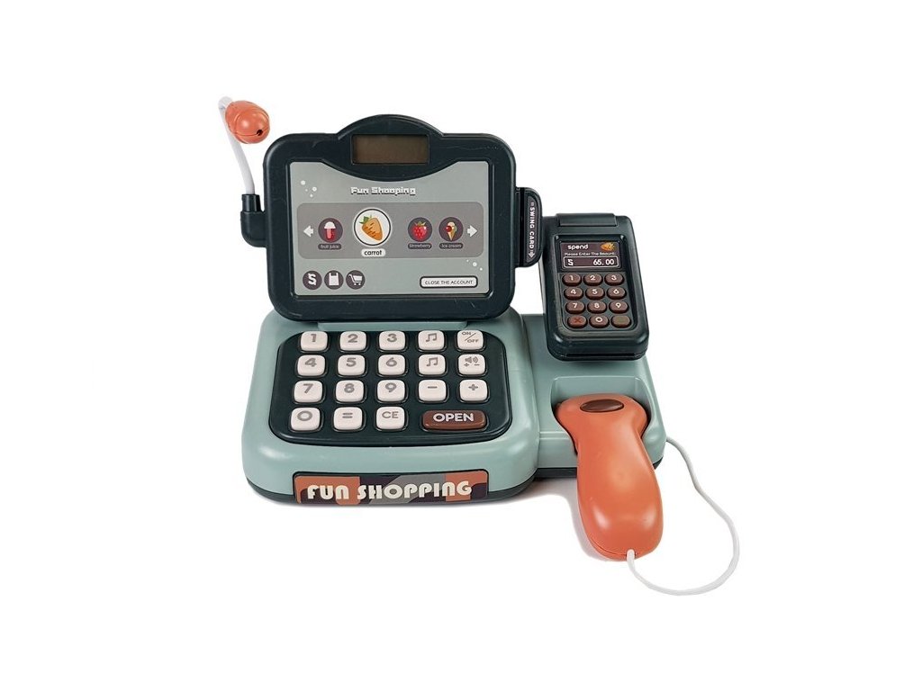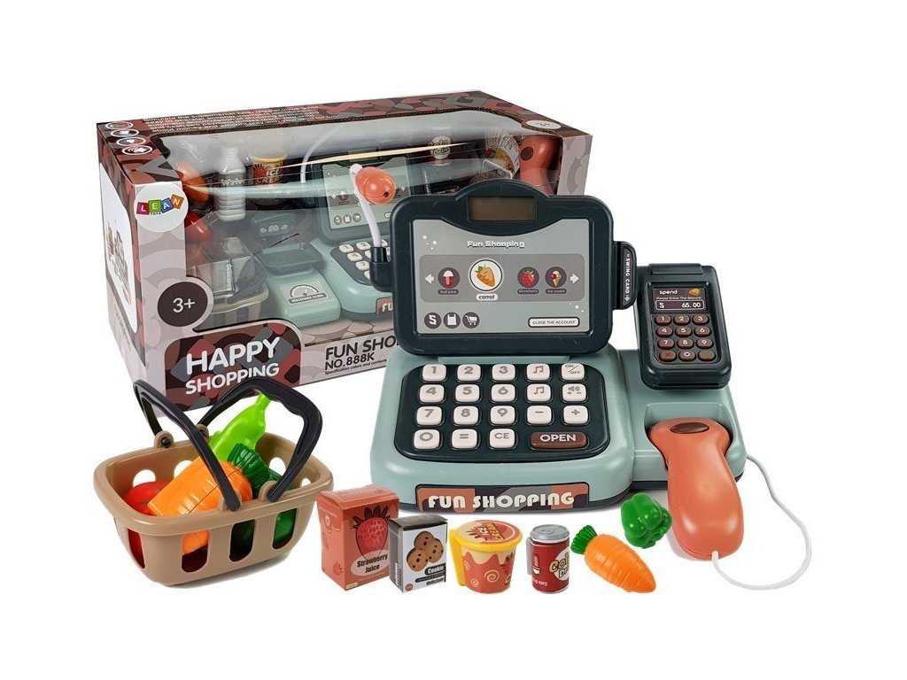 Hra na obchod je jednou z nejoblíbenějších her pro děti všech věkových kategorií. Tato forma trávení času jim umožňuje naučit se počítat a domlouvat se, což se jim v budoucnu a ve škole jistě bude hodit. Součástí sady je skener, který rozpoznává čárové kódy a identifikuje ceny. Mikrofon umístěný v pokladně má hudební funkci, po stisknutí tlačítka noty uslyšíte až 25 různých písniček.