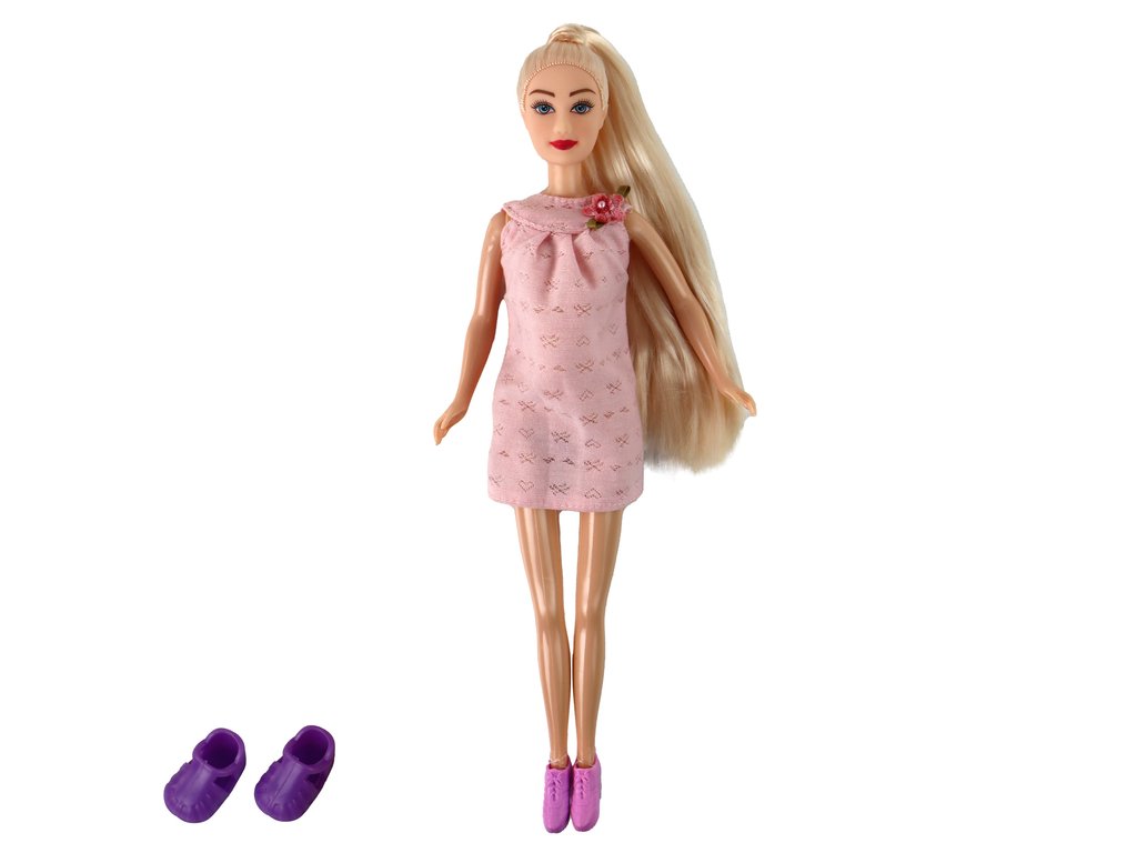 Panenka pro děti s dlouhými blond vlasy, skříň, boty, šaty a doplňky růžová