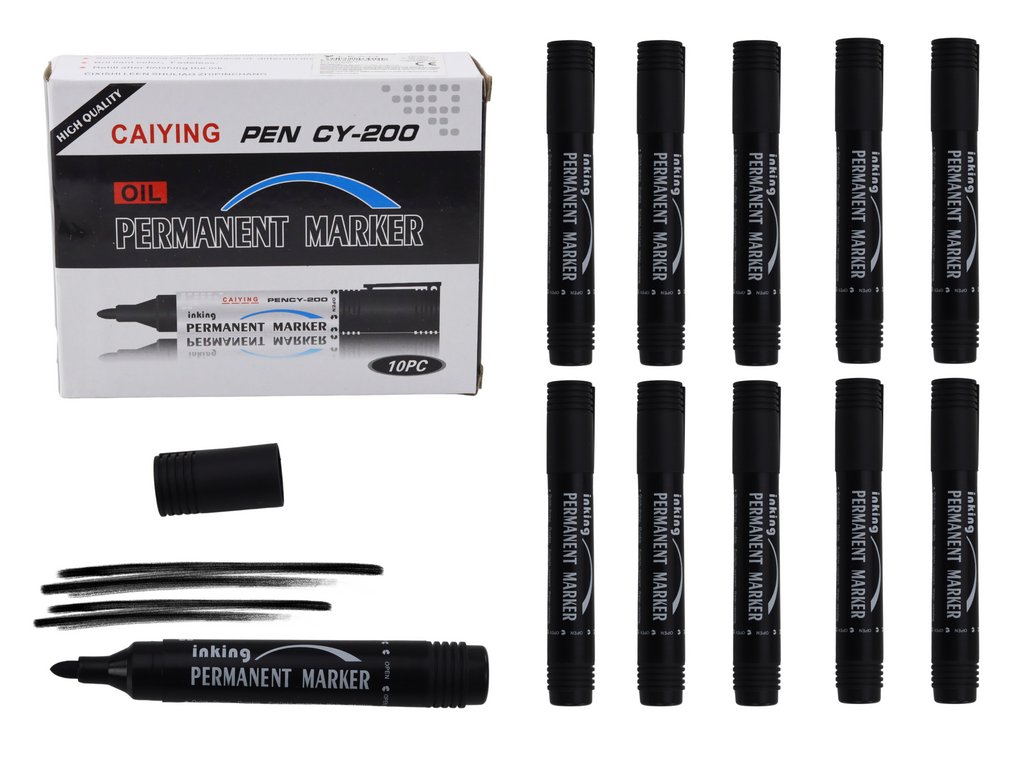 Sada 10 černých permanentních markerů je ideálním nástrojem pro trvalé značení a psaní. Každý marker je vybaven kulatým hrotem, což zajišťuje přesné linie a pohodlné použití.