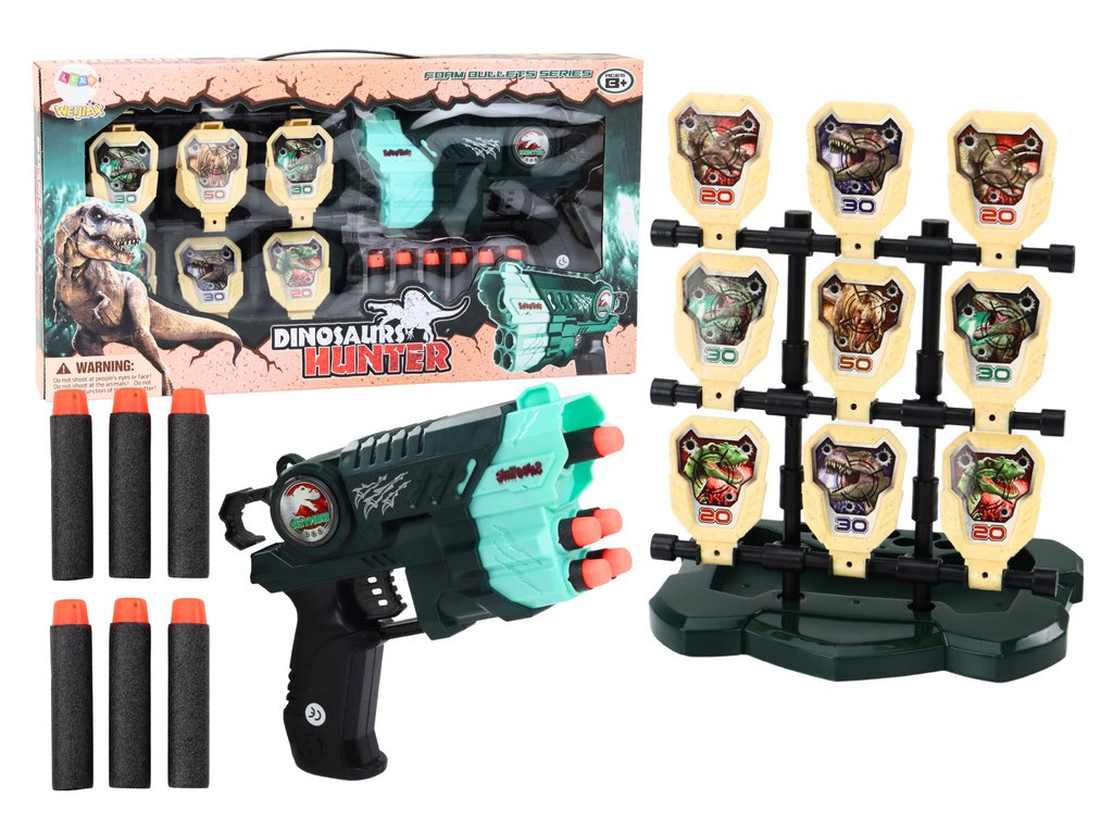 Sada pro střelbu s motivem dinosaurů je skvělá volba pro mladé milovníky dobrodružství a prehistorických tvorů. Sada obsahuje malou, šikovnou pistoli na pěnové šipky, která díky svému ergonomickému tvaru skvěle padne do dětské ruky. Pistole je vybavena zásobníkem, což zajišťuje, že šipky jsou vždy po ruce a zábava je dynamičtější a plynulejší.
